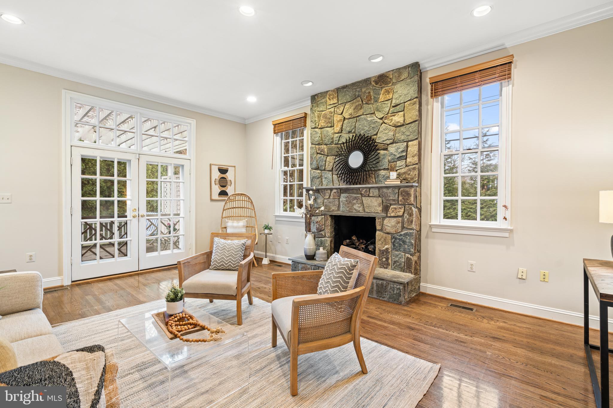 The natural light-filled upper level features a luxurious primary retreat with a sitting room, two walk-in closets, vaulted ceilings, and a recently renovated spacious spa-like ensuite bathroom. Three more nicely sized additional bedrooms and two full bathrooms, one ensuite, round out the upper level.