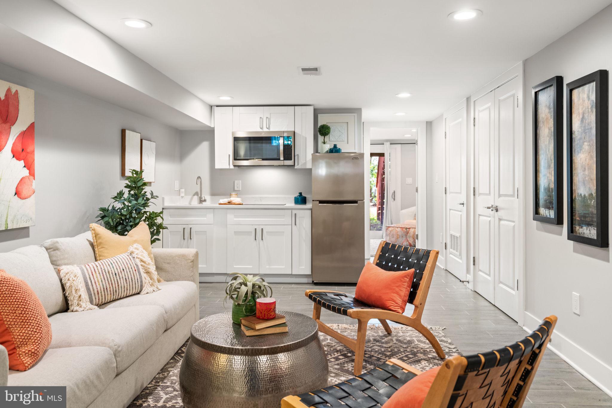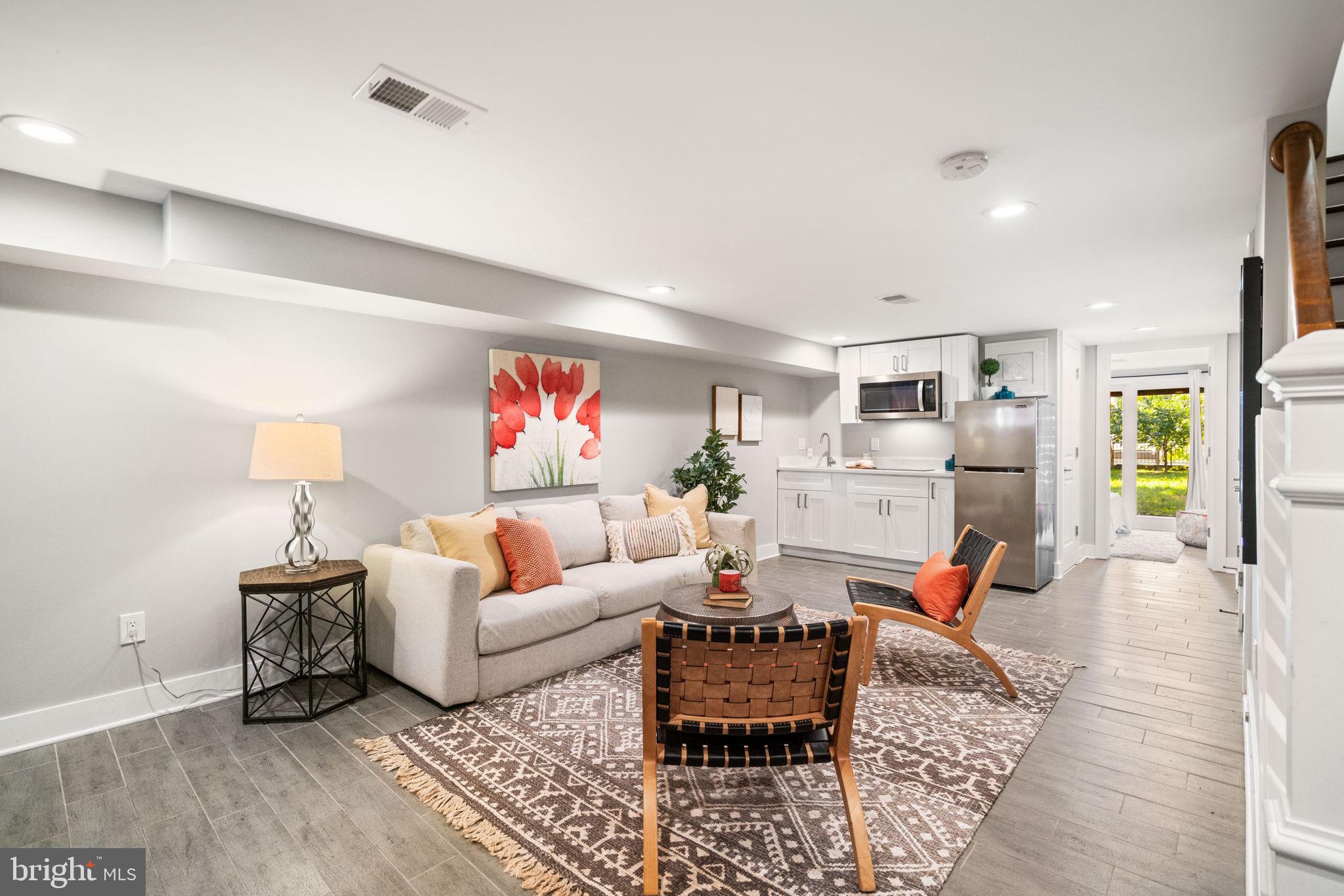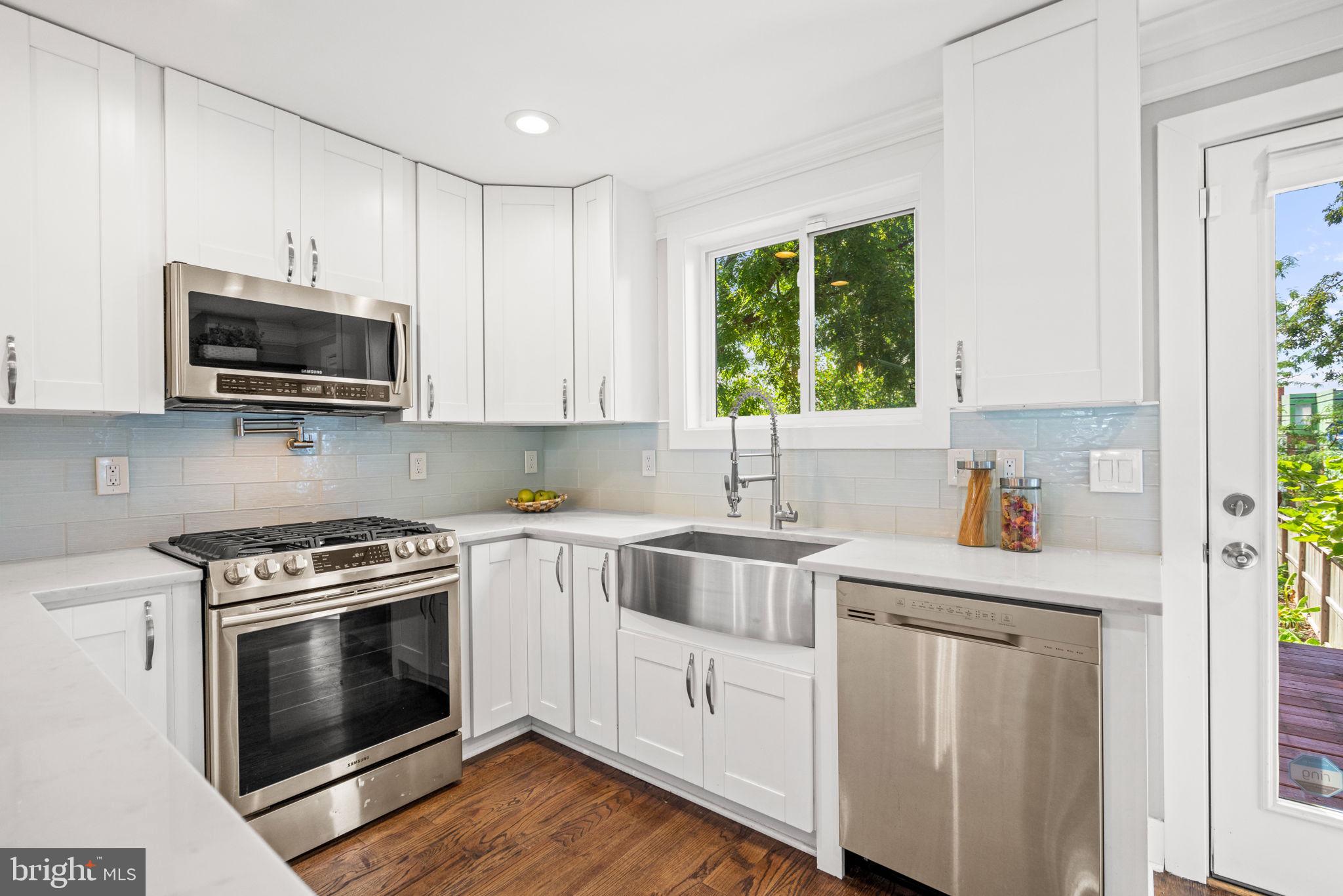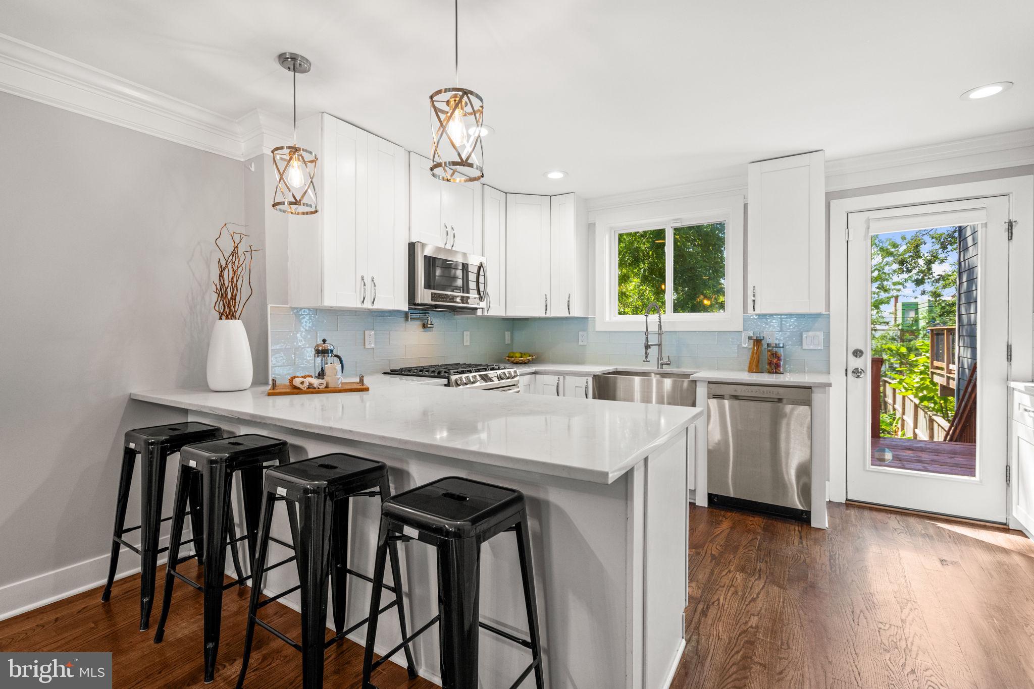 Welcome to 1273 Oates Street NE. A stylishly renovated four-bedroom, three-and-a-half-bath rowhome perfectly positioned on an oversized lot in the heart of Trinidad. Step inside to discover warm, hand-stained oak hardwoods and sun-drenched spaces that flow effortlessly from room to room. The bright, open-concept main level is anchored by a chef's kitchen that impresses with Carrara-style quartz countertops, designer tile backsplash, stainless steel appliances, pot filler, and an expansive island breakfast bar for daily dining. The main level's bright and open floor plan is ideal for entertaining. The combination of living and dining spaces flows into the kitchen, then right out to the deck and back garden, giving guests room to dine, lounge, and circulate inside and out. A half-bath completes the main level for added convenience.Upstairs, the serene primary suite boasts soaring ceilings, abundant natural light, and a spa-inspired en suite with a double vanity, a spacious walk-in shower, and a skylight. Two additional bedrooms and a full bath complete the upper level with comfort and style. The fully finished lower level, complete with front and rear entrances, high ceilings, and a kitchenette, offers flexible living for guests, in-laws, or potential rental income. A fourth bedroom opens to a private rear patio and manicured lawn, ideal for morning coffee or evening gatherings. Out back, the home reveals one of Oates Street's signature advantages: a notably deep lot. Secure parking sits at the rear of the landscaped yard, enhancing curb appeal while preserving generous green space rarely found in the city. 1273 Oates Street, NE offers a rare blend of space, sophistication, and versatility, in a neighborhood that hums with life yet feels distinctly like home. Beloved for its tree-lined blocks, deep yards, and eclectic mix of historic charm and modern energy, Trinidad is one of NE DC's most vibrant and connected communities. Residents here enjoy the neighborhood's close-knit feel, walkable lifestyle, and proximity to all the excitement of Union Market and H Street while still retreating home to quiet, residential streets.