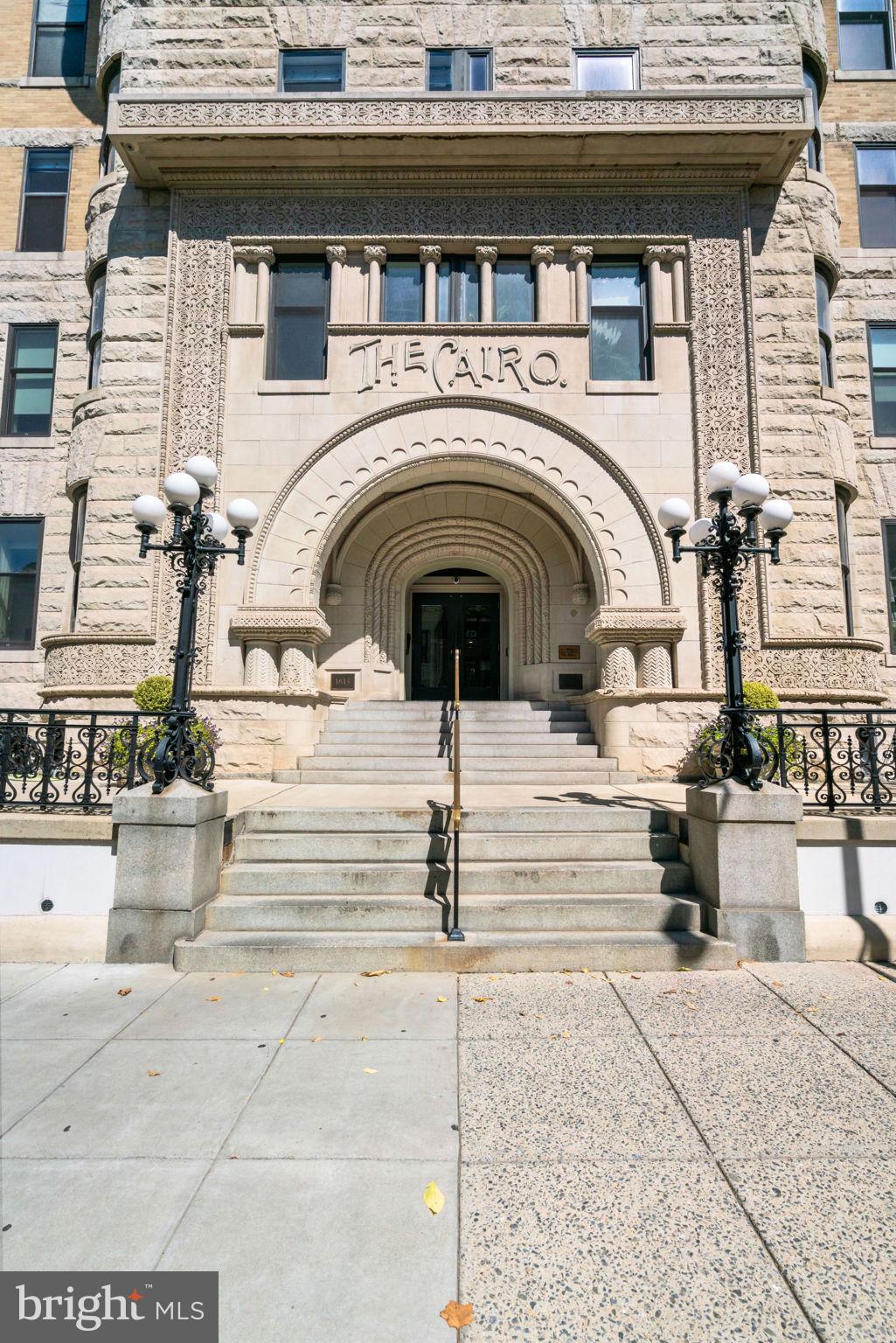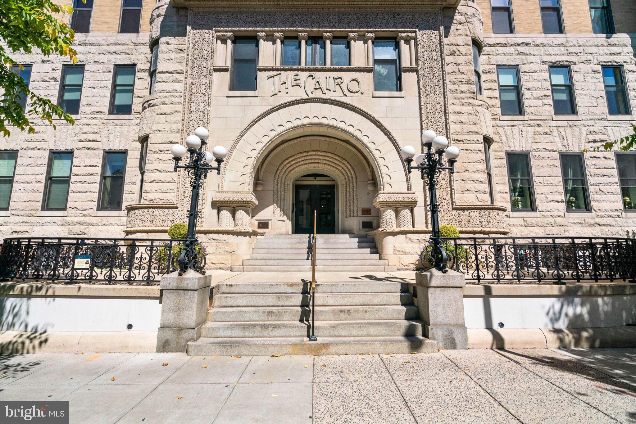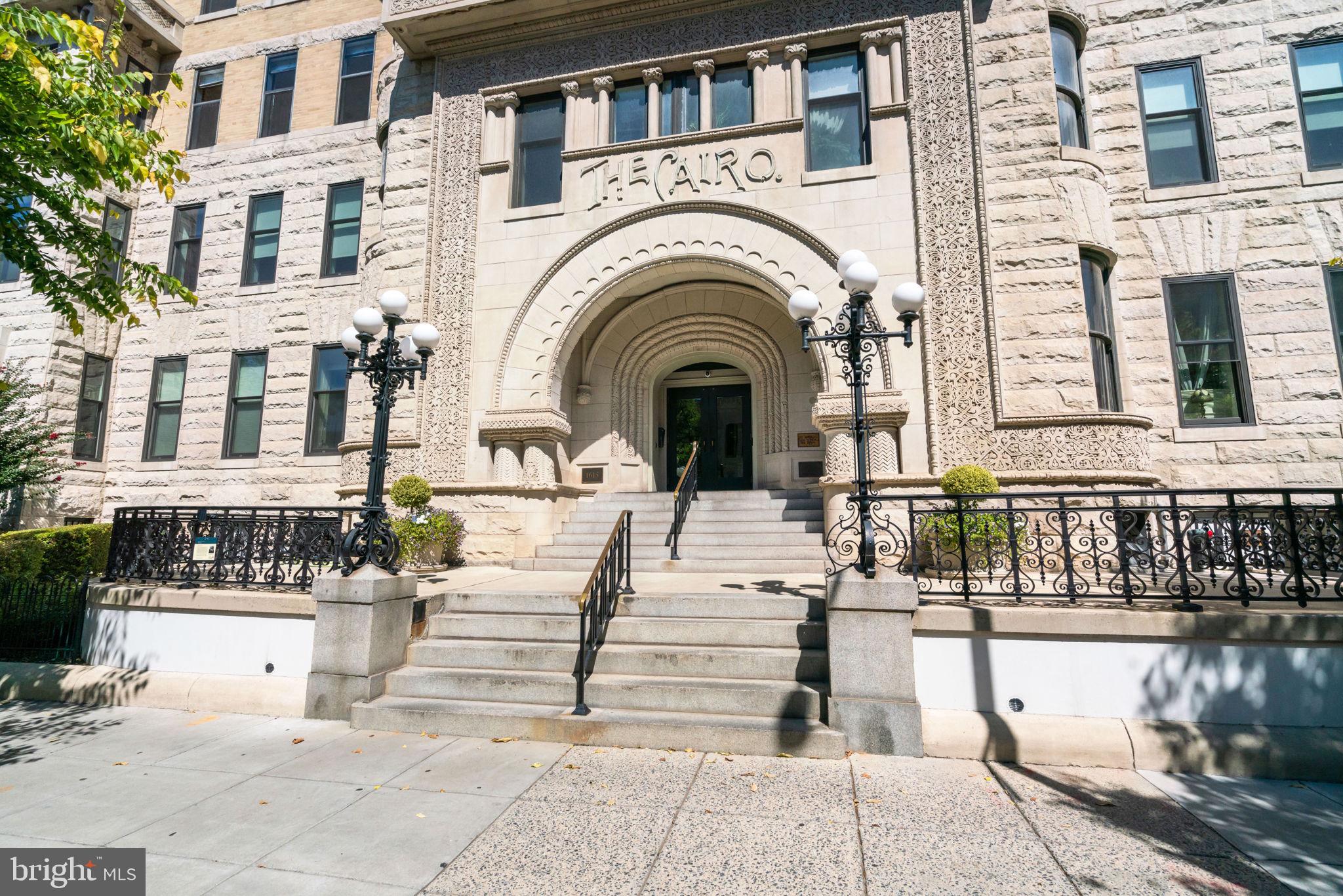 Rich in history, this distinguished one bedroom one bath unit is prominently located in the Cairo Condominium, a landmark in the vibrant Dupont Circle neighborhood as D.C.'s tallest residential building. Featuring an open floor plan with combination living / dining. Wonderful amenities at the Cairo, including a spacious rooftop deck with panoramic city and monument views, a full service 24-hour front desk, and a private patio and garden. The building's rooftop deck provides one of the most complete views of Northwest DC's skyline - from the National Cathedral to Georgetown, the Washington Monument, and even the Capitol. Encompassing distinctive architectural elements throughout the building, such a unique U-shaped building surrounding a stone courtyard, as well as wide marble staircases inside. Convenience abounds! Just blocks from the Dupont Circle Metro Station on the Redline and all the shopping, dining and entertainment at the Circle. 1615 Q Street NW #713 enjoys accessibility to an abundance of grocery, retail, and dining options, vibrant bars, and nightlife in the 11th Street Corridor, 14th Street, and Adams Morgan.