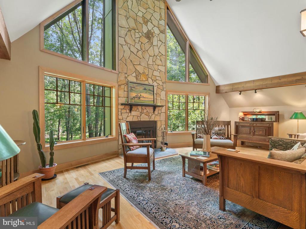 RENTAL AVAILABLE JULY 1. Serenely situated on 4.79+/- acres of protected and nature-filled land with mature trees, this remarkable modern home offers a tranquil retreat. Featuring an open-concept floor plan with an abundance of natural light through beautiful oversized windows, soaring cathedral ceilings, and custom wood flooring. The state-of-the-art chef's kitchen is anchored by a large center island with a breakfast bar and a second sink, and features stainless steel appliances, granite countertops, and sliding glass doors to the peaceful back deck. The kitchen overlooks the dining room with built-ins, which flows seamlessly into the sun-drenched great room with its two-story vaulted ceilings and a handsome stone fireplace. A spacious screened-in porch with wood-paneled, vaulted ceilings adds to the many entertaining spaces with idyllic backdrops. Two first-floor bedrooms, one full bath, and laundry complete the main level of the home. Upstairs, the gracious owner's suite with an en suite full bath and high ceilings, as well as a fourth bedroom and full bathroom can be found. The walk-out, expansive lower level provides even more entertainment options with a recreation room complete with a wet bar and drink fridge. There are two sets of sliding glass doors to the back patio with a fountain, a hot tub, and an outdoor shower, all overlooking the verdant setting. Additional offerings include a blacktop / sport court, as well as energy-efficient geothermal heating and air conditioning. 22919 Wildcat Road delivers privacy and tranquility surrounded by mature trees and lush greenery, yet it is conveniently located close to major transportation routes, including I-270 and I-495, and local restaurants and parks. Landlord to arrange for two yard clean-ups per year (spring and fall)!