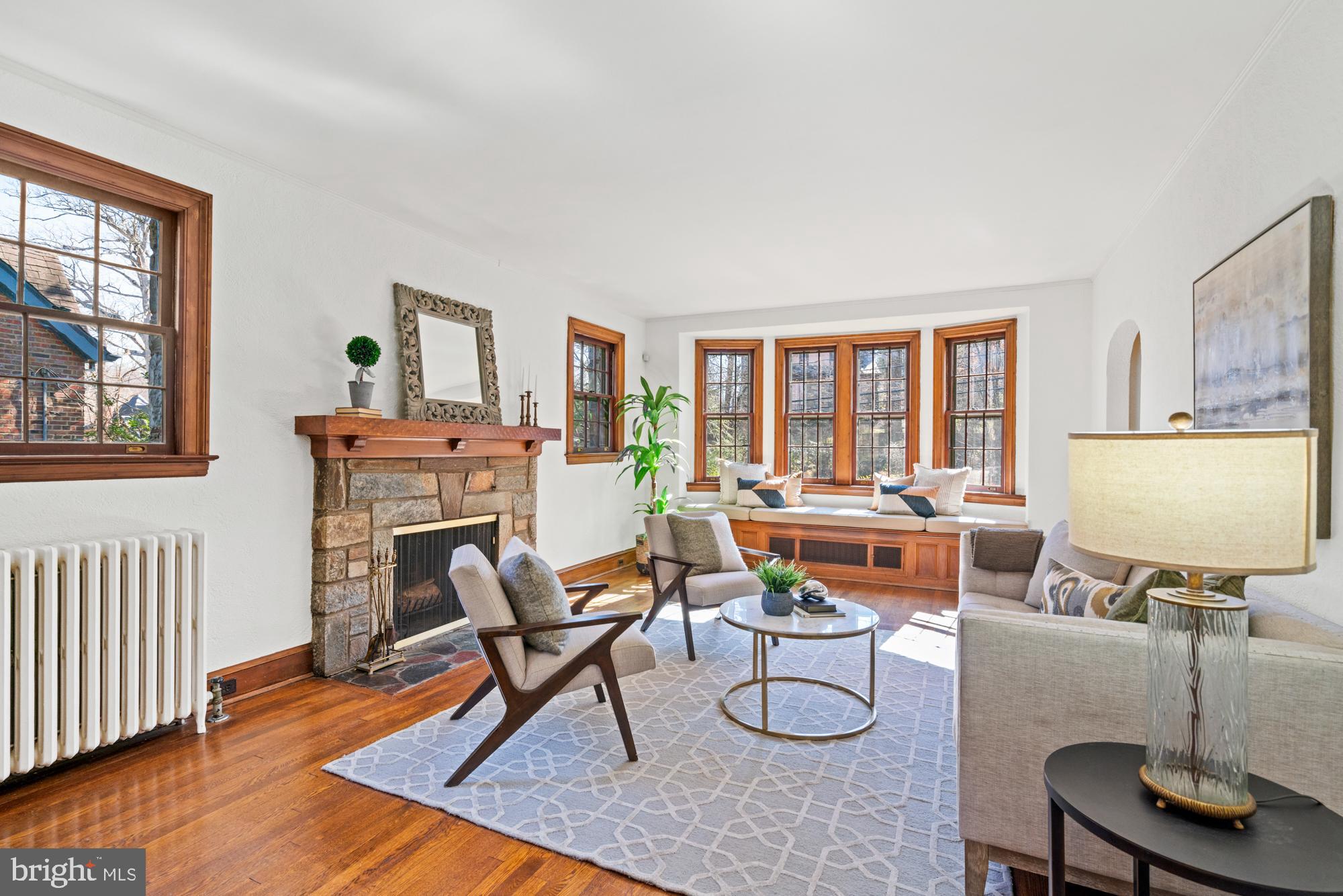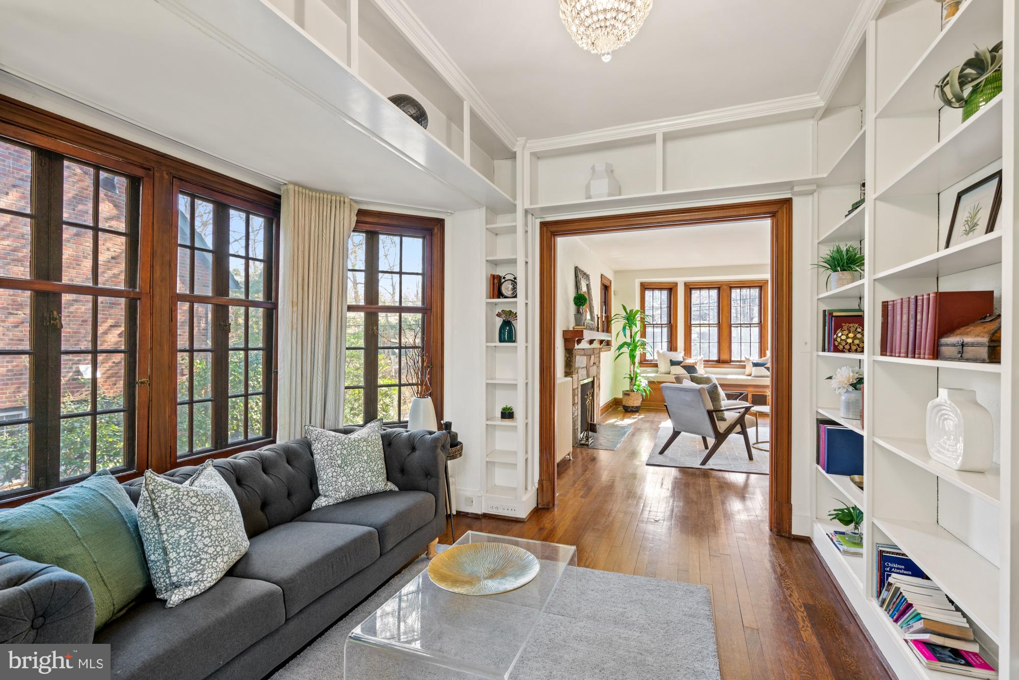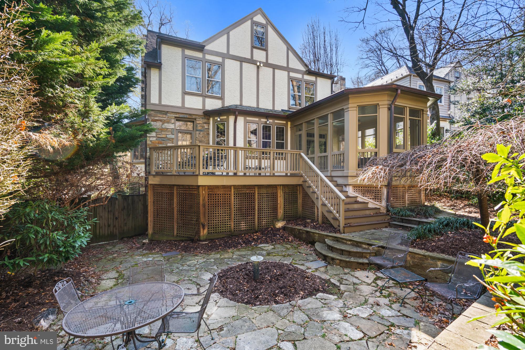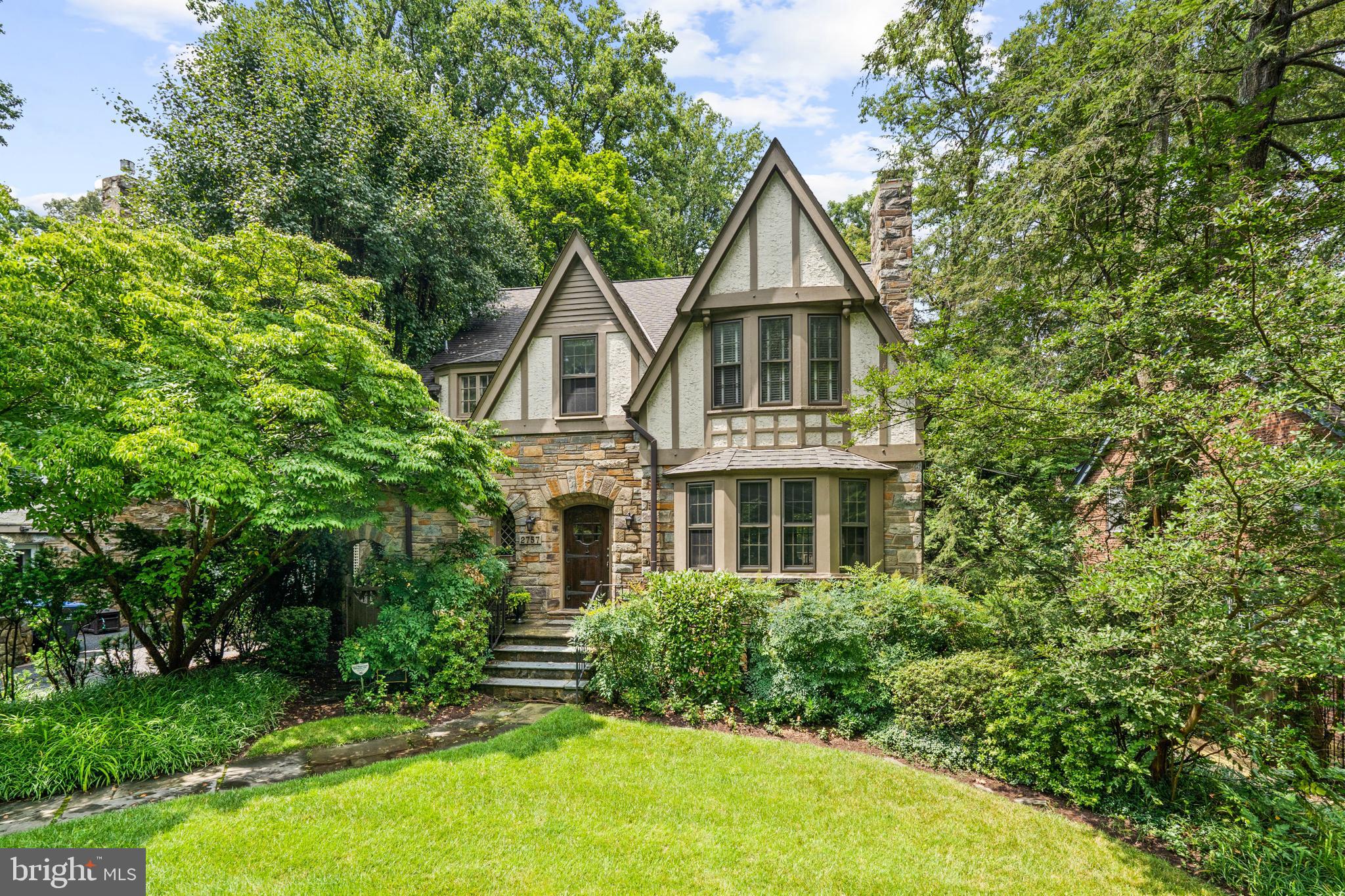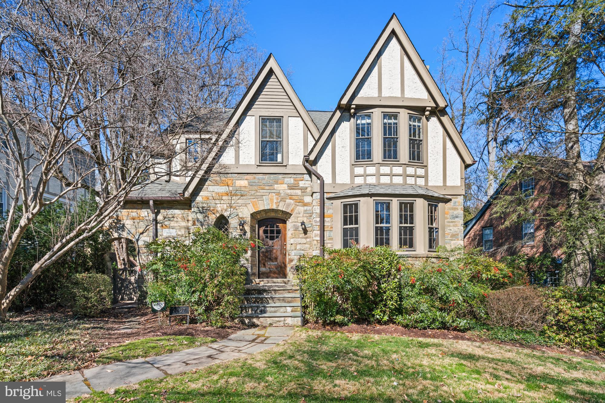 Brimming with convenience in the heart of the tree-lined community of Forest Hills, this updated and immaculately-maintained 3,600 +/- square foot Tudor home features four bedrooms, four-and-one-half bathrooms, sun-filled spaces, and beautiful exterior stonework. Offering classic and elegant details, including hardwood floors and moldings, arched doorways, diamond-mullioned windows, generous room sizes, and wonderful outdoor living spaces. The perfectly planned rooms, highlighted by period-accurate mouldings and trim, offer terrific flow for daily living and entertaining, both indoors and out. An expansive screened porch and rear deck overlooks a gracious stone patio surrounded by lush grounds with mature trees, ensuring the utmost in privacy. Approached by flagstone walkway surrounded by a lush front lawn, the main level boasts an inviting foyer. Curl up with a book in front of the living room's stone fireplace or retreat into the library with floor to ceiling bookshelves. The oversized bay window seat creates another moment of peace. The gourmet eat-in kitchen was updated by Gilday Kitchens to create a delightful and bright environment for cooking and gathering. Entertaining is a breeze in the adjoining banquet-sized dining room and built in bar.. The second level is highlighted by the owner's bedroom with two walk-in closets and an en suite spa-like bathroom featuring dual sinks, a luxurious soaking tub, and a separate shower. Two additional bedrooms and a full hall bath adorn the second floor. The finished third level is used as an office, playroom, or bedroom, complete with a full bathroom and ample storage space. The finished lower level features a family room, a laundry room, a full bathroom, and extra storage. Additional highlights include an attached two-car garage and a private, level driveway for parking and play. The back yard is terraced for ultimate functionality, allowing for any kind of usageWelcome home to this delightful residence offering luxury and convenience with local restaurants, shopping, culture, and Rock Creek Park nearby.