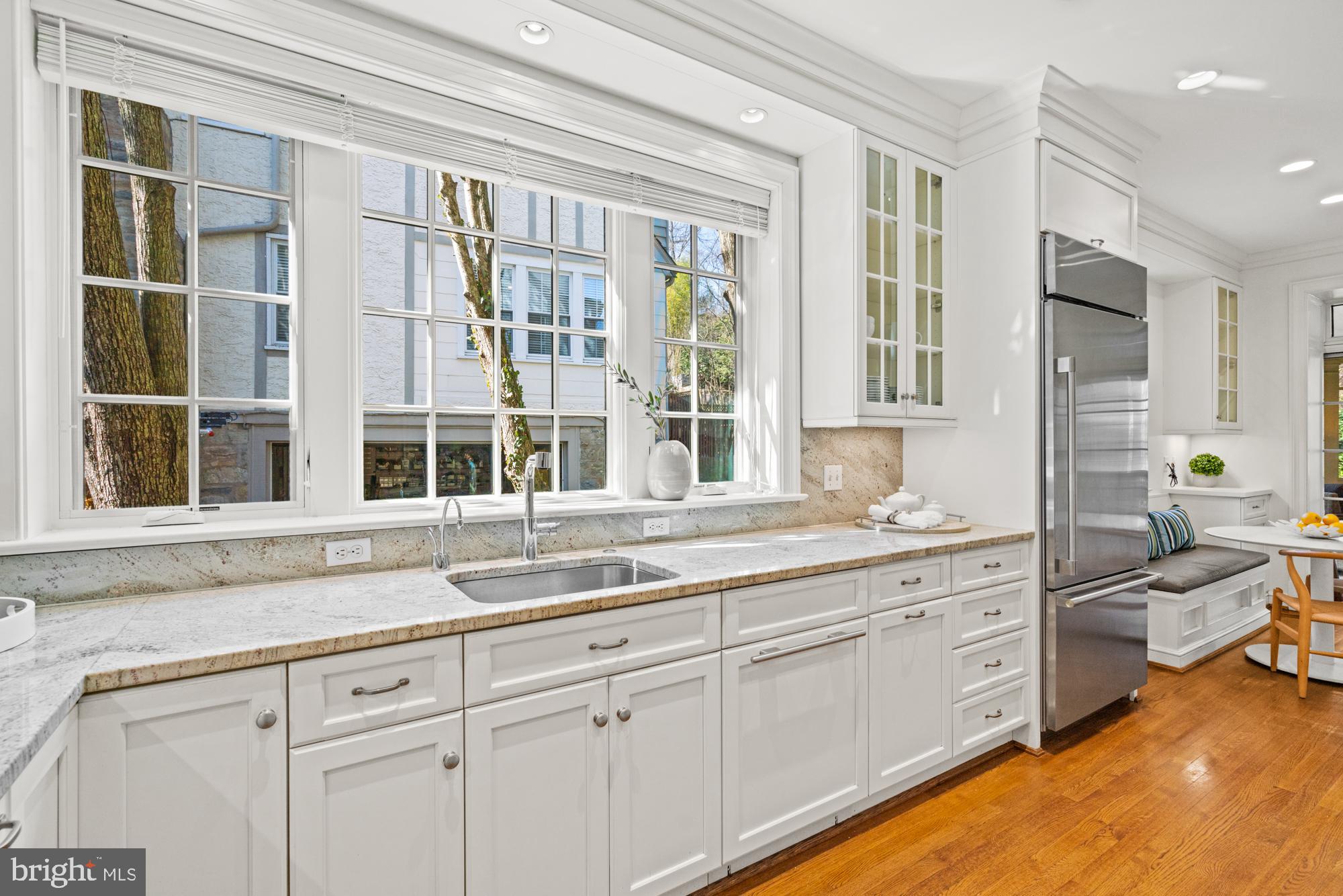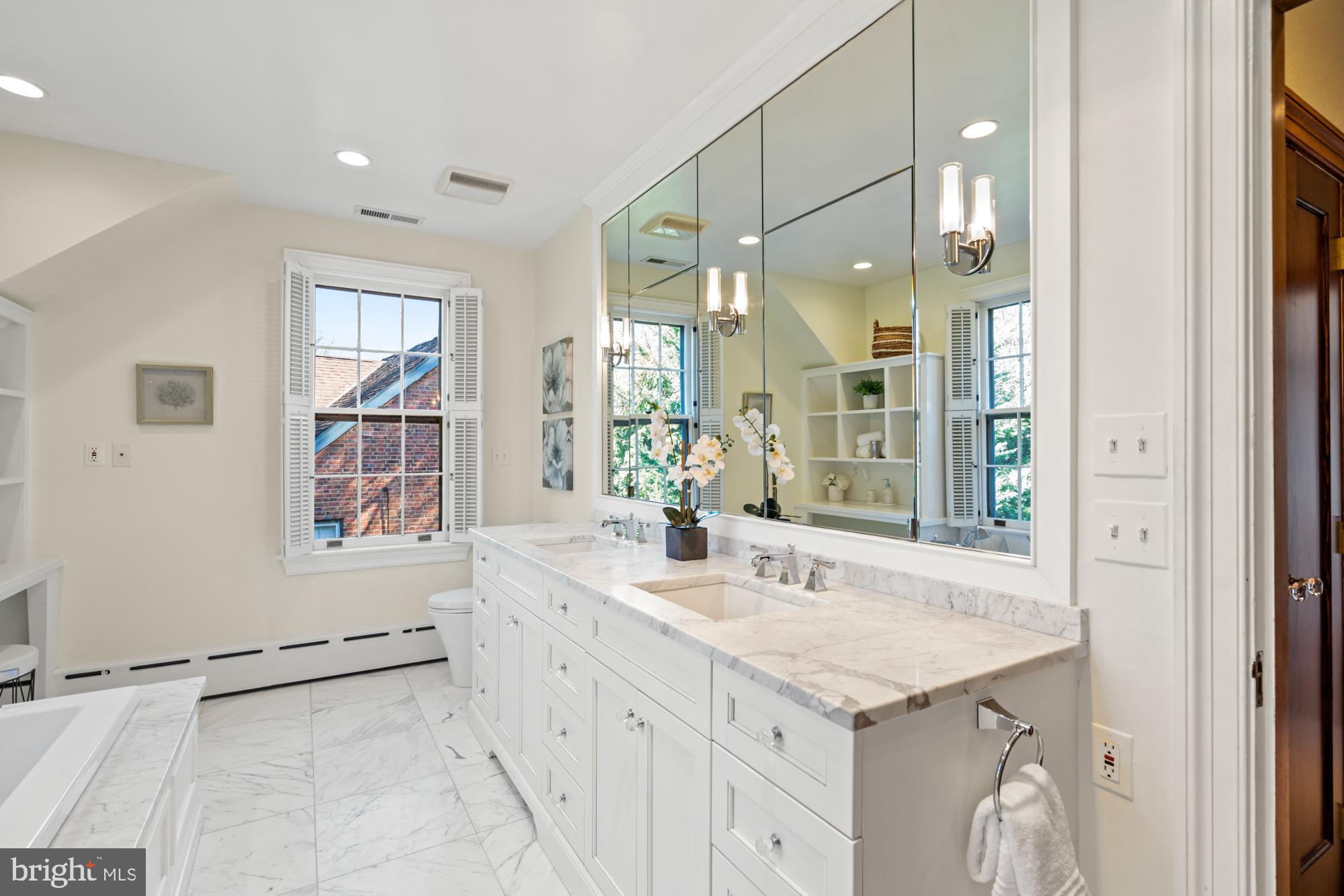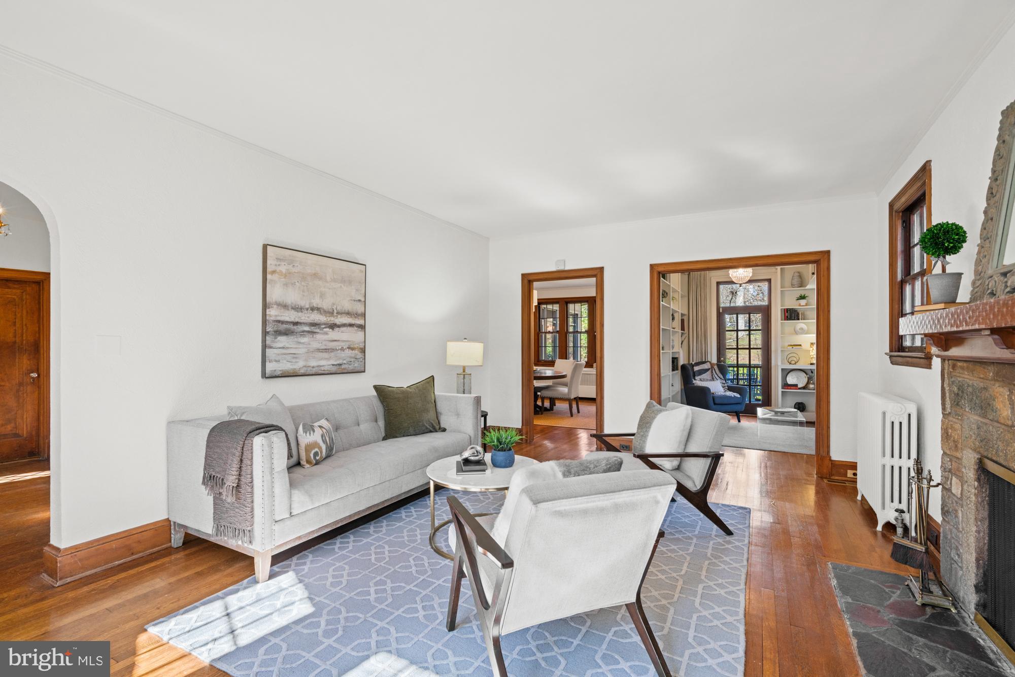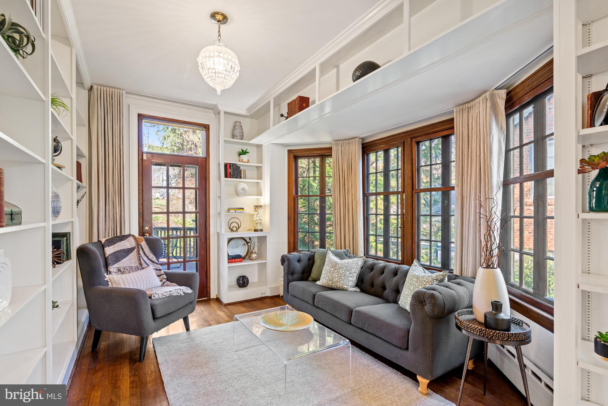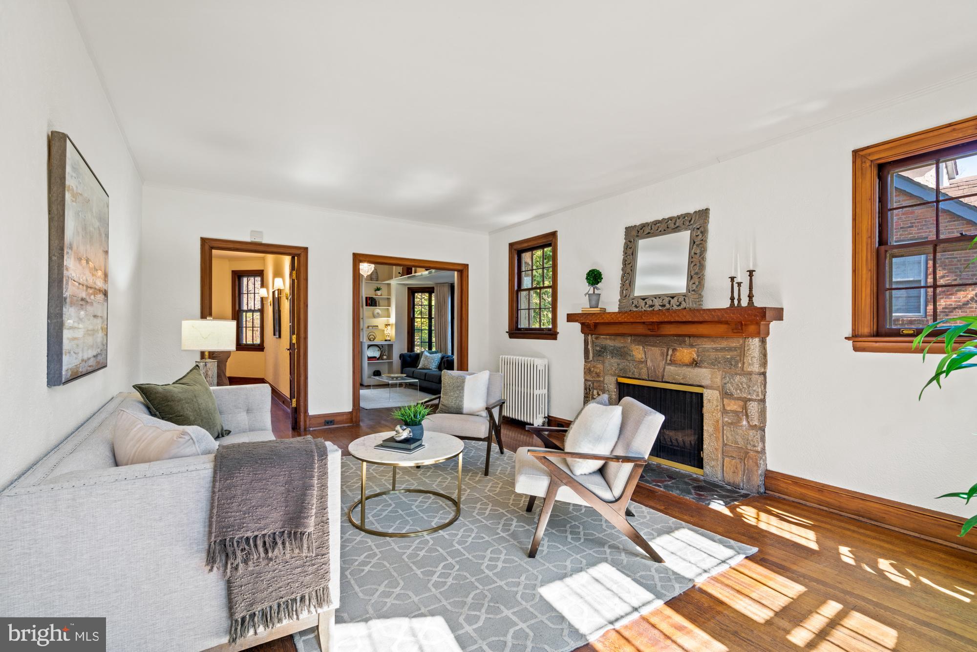 Brimming with convenience in the heart of the tree-lined community of Forest Hills, this updated and immaculately-maintained 3,600 +/- square foot Tudor home features four bedrooms, four-and-one-half bathrooms, sun-filled spaces, and beautiful exterior stonework. Offering classic and elegant details, including hardwood floors and moldings, arched doorways, diamond-mullioned windows, generous room sizes, and wonderful outdoor living spaces. The perfectly planned rooms, highlighted by period-accurate mouldings and trim, offer terrific flow for daily living and entertaining, both indoors and out. An expansive screened porch and rear deck overlooks a gracious stone patio surrounded by lush grounds with mature trees, ensuring the utmost in privacy. Approached by flagstone walkway surrounded by a lush front lawn, the main level boasts an inviting foyer. Curl up with a book in front of the living room's stone fireplace or retreat into the library with floor to ceiling bookshelves. The oversized bay window seat creates another moment of peace. The gourmet eat-in kitchen was updated by Gilday Kitchens to create a delightful and bright environment for cooking and gathering. Entertaining is a breeze in the adjoining banquet-sized dining room and built in bar.. The second level is highlighted by the owner's bedroom with two walk-in closets and an en suite spa-like bathroom featuring dual sinks, a luxurious soaking tub, and a separate shower. Two additional bedrooms and a full hall bath adorn the second floor. The finished third level is used as an office, playroom, or bedroom, complete with a full bathroom and ample storage space. The finished lower level features a family room, a laundry room, a full bathroom, and extra storage. Additional highlights include an attached two-car garage and a private, level driveway for parking and play. The back yard is terraced for ultimate functionality, allowing for any kind of usageWelcome home to this delightful residence offering luxury and convenience with local restaurants, shopping, culture, and Rock Creek Park nearby.