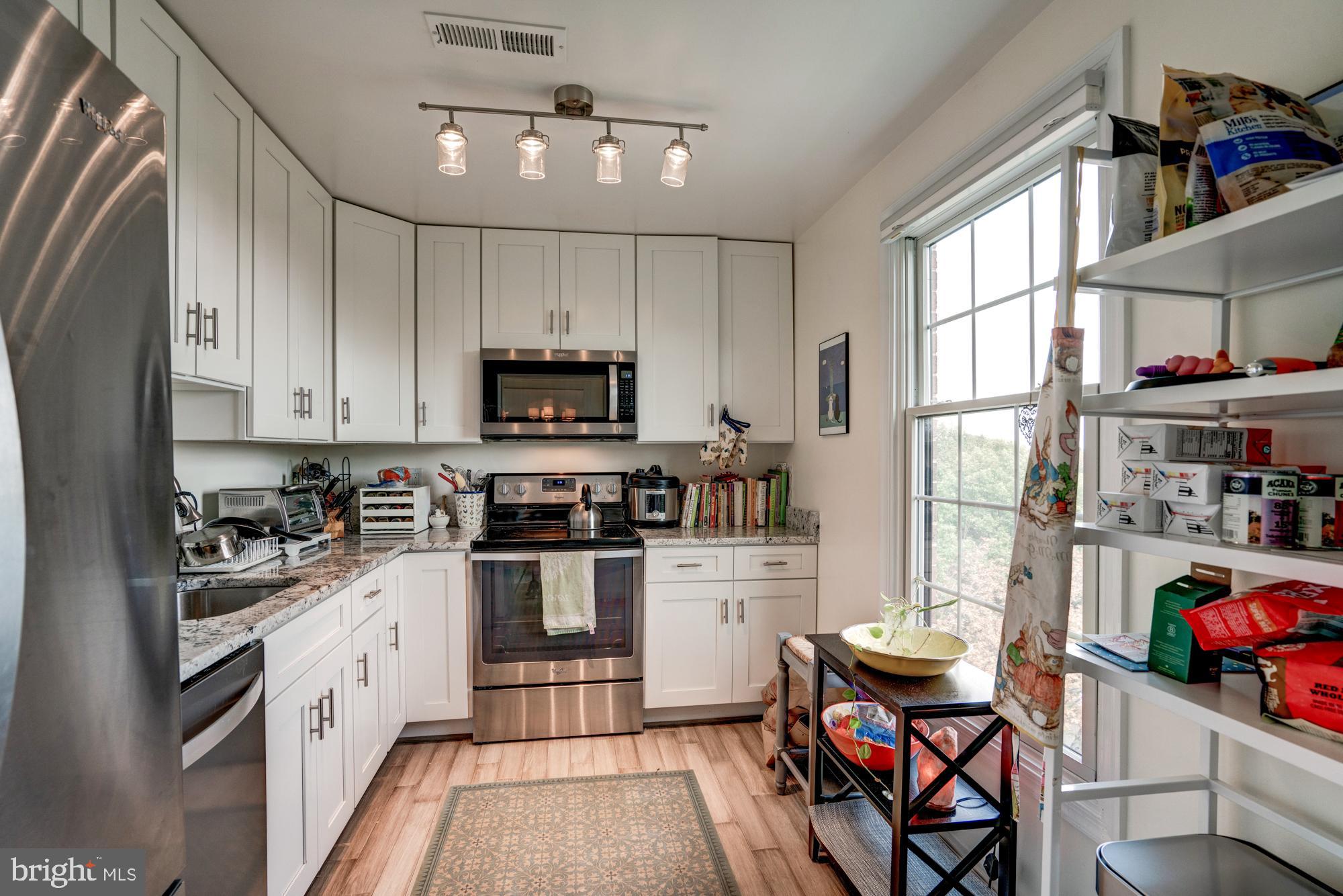 The primary suite is a tranquil retreat, boasting views of the Washington Monument and spectacular sunrises, complete with a walk-in closet for all your storage needs. The updated bathrooms provide a touch of luxury with their contemporary finishes and fixtures. Sun-drenched windows fill the home with natural light, creating a bright and cheerful ambiance throughout.