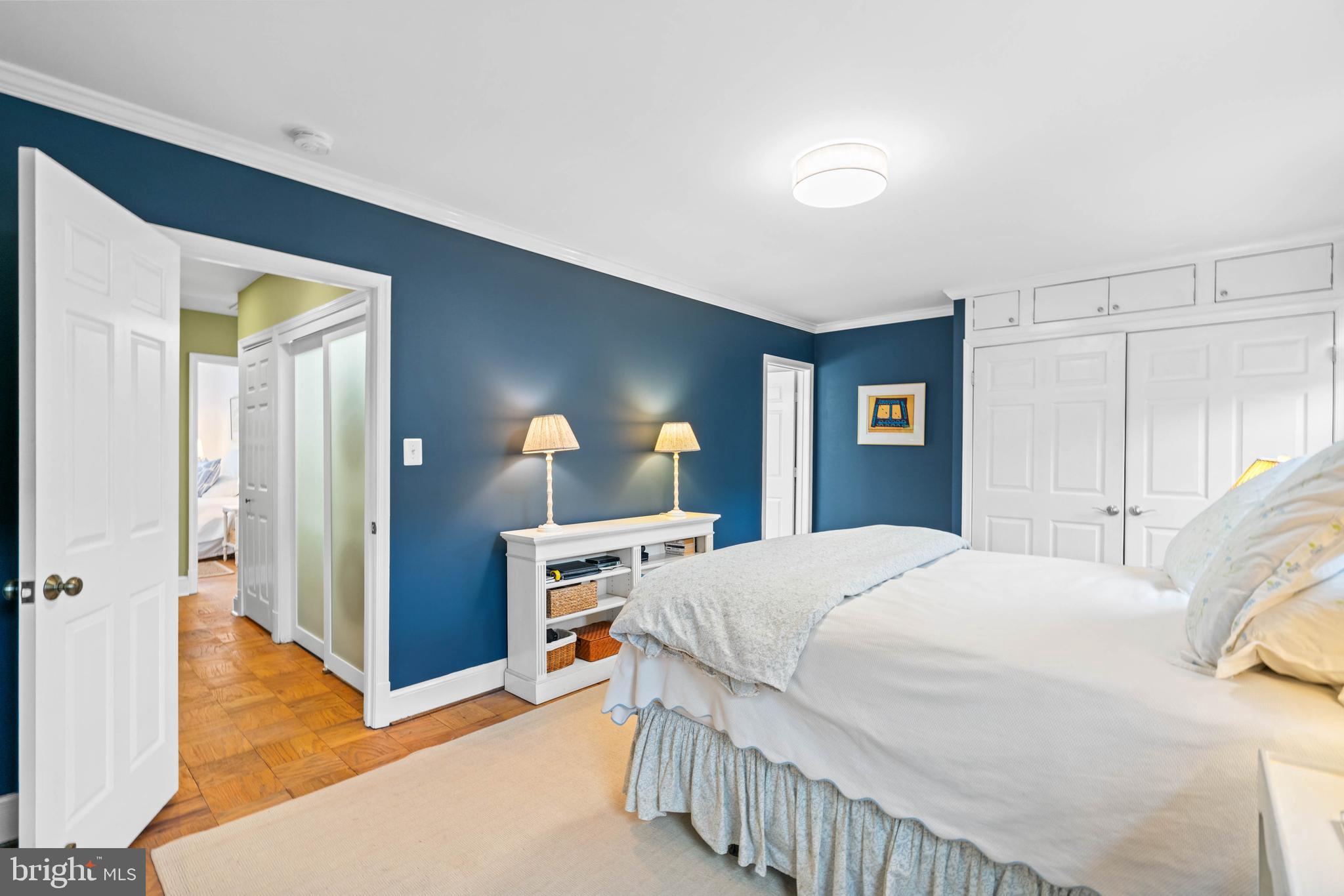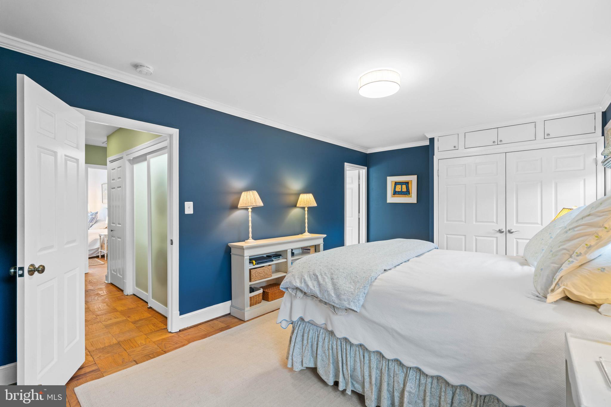 Upstairs, you'll find three spacious bedrooms and two full bathrooms. The primary suite features an ensuite bathroom and ample storage added by the last owner, featuring two double-door closets and shelving galore! The additional bedrooms offer flexibility for guests or your own use; whether it be a home office, or workout space. Conveniently located in the upper hallway are the large size washer and dryer, linen closets, extra storage space and utility closets all conveniently located behind sliding doors.
