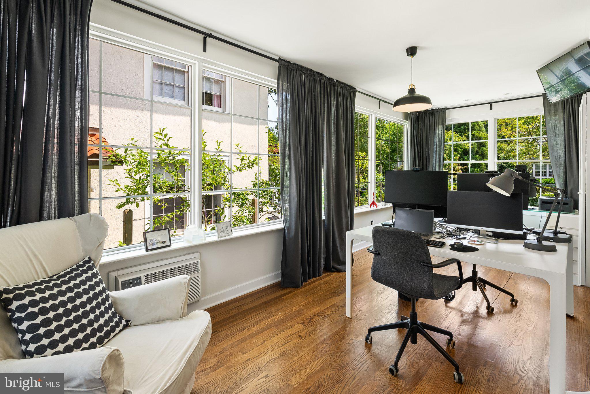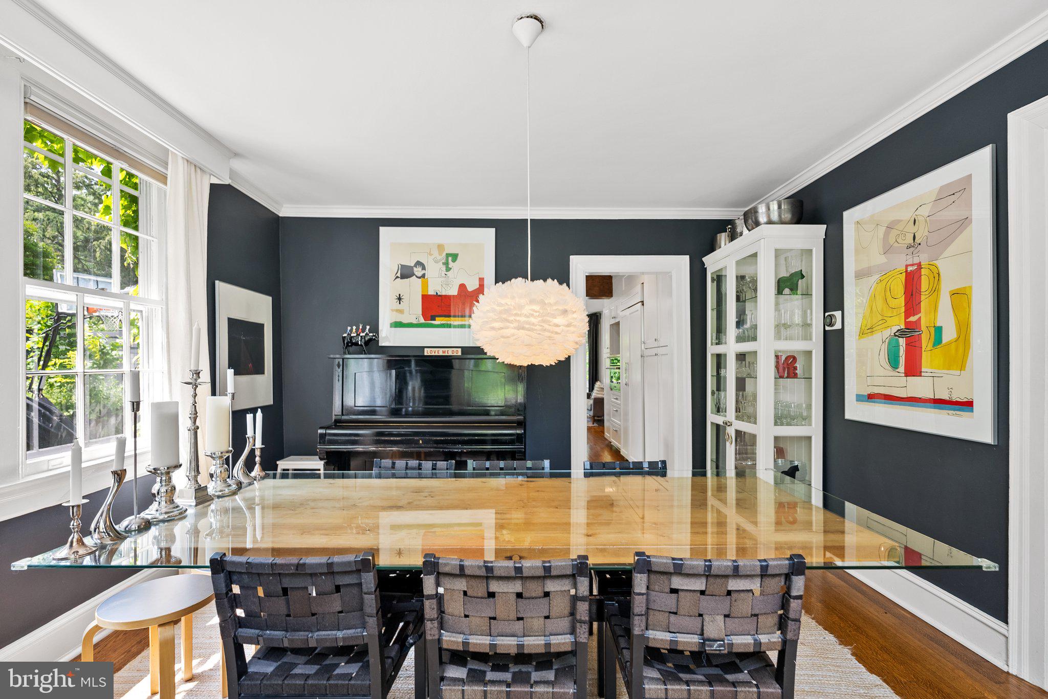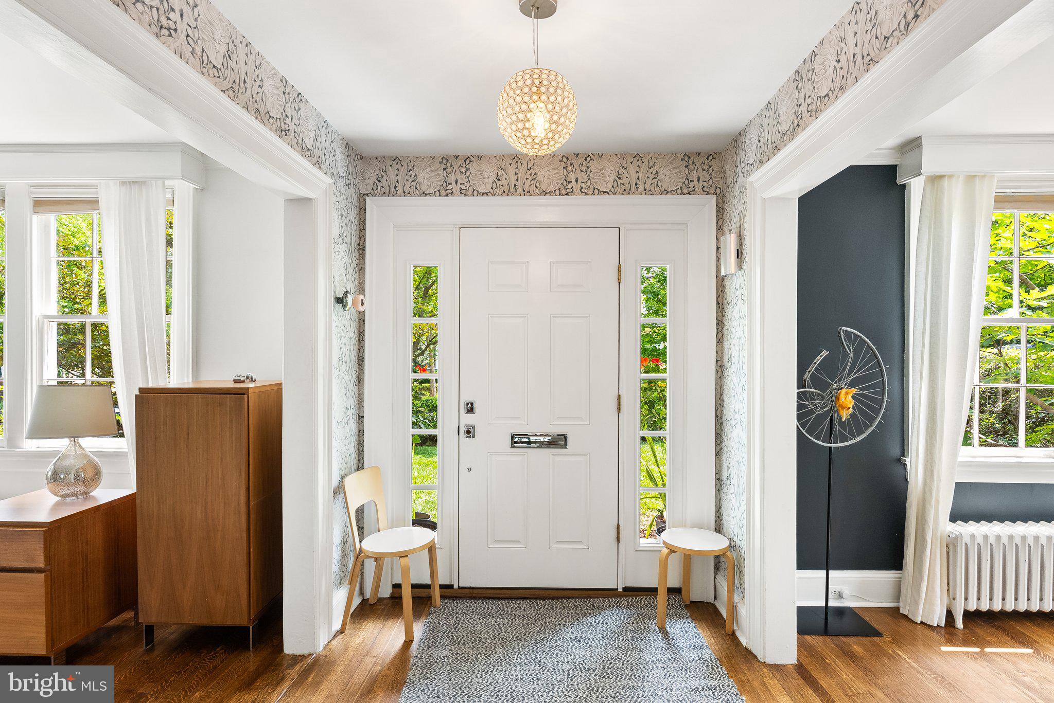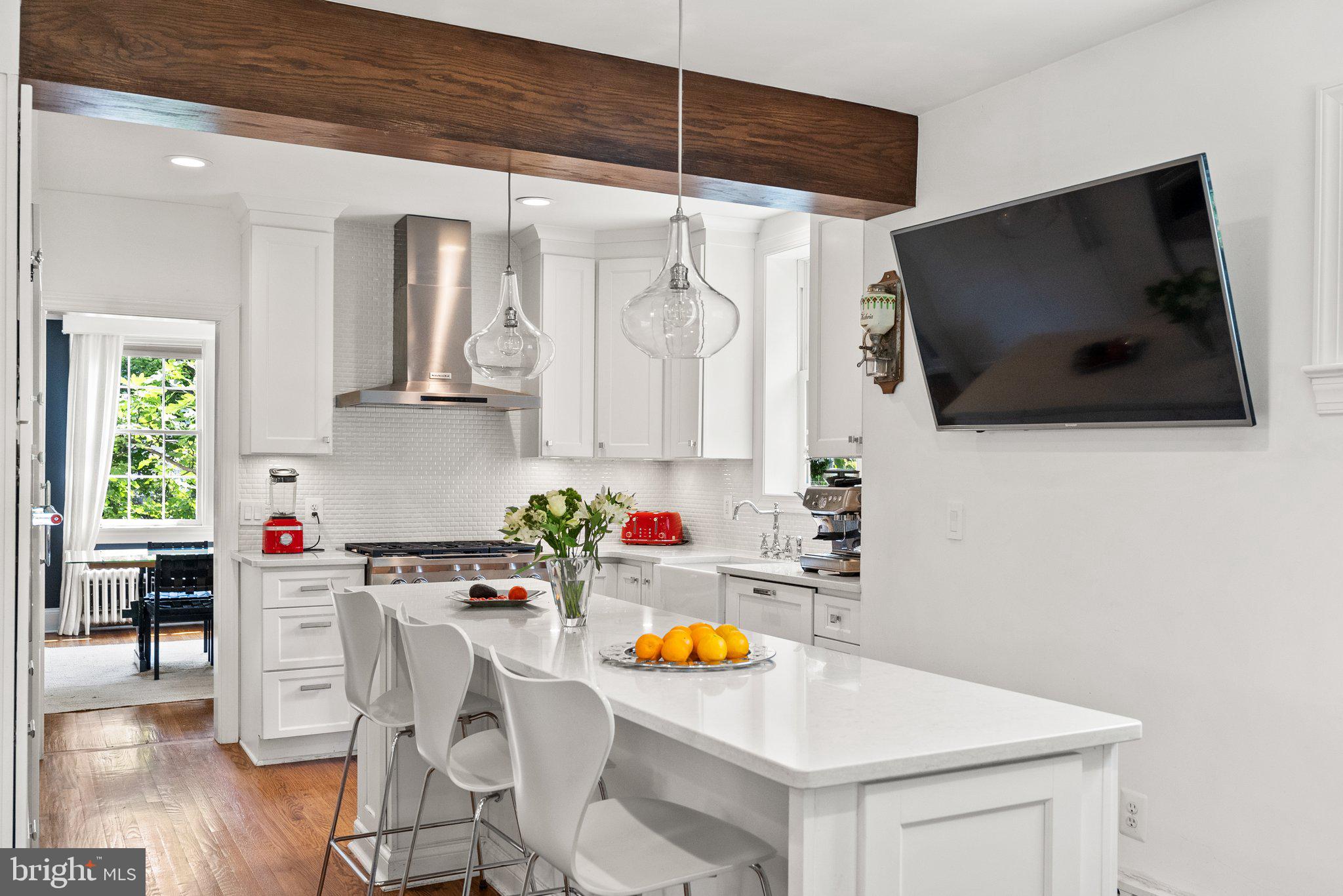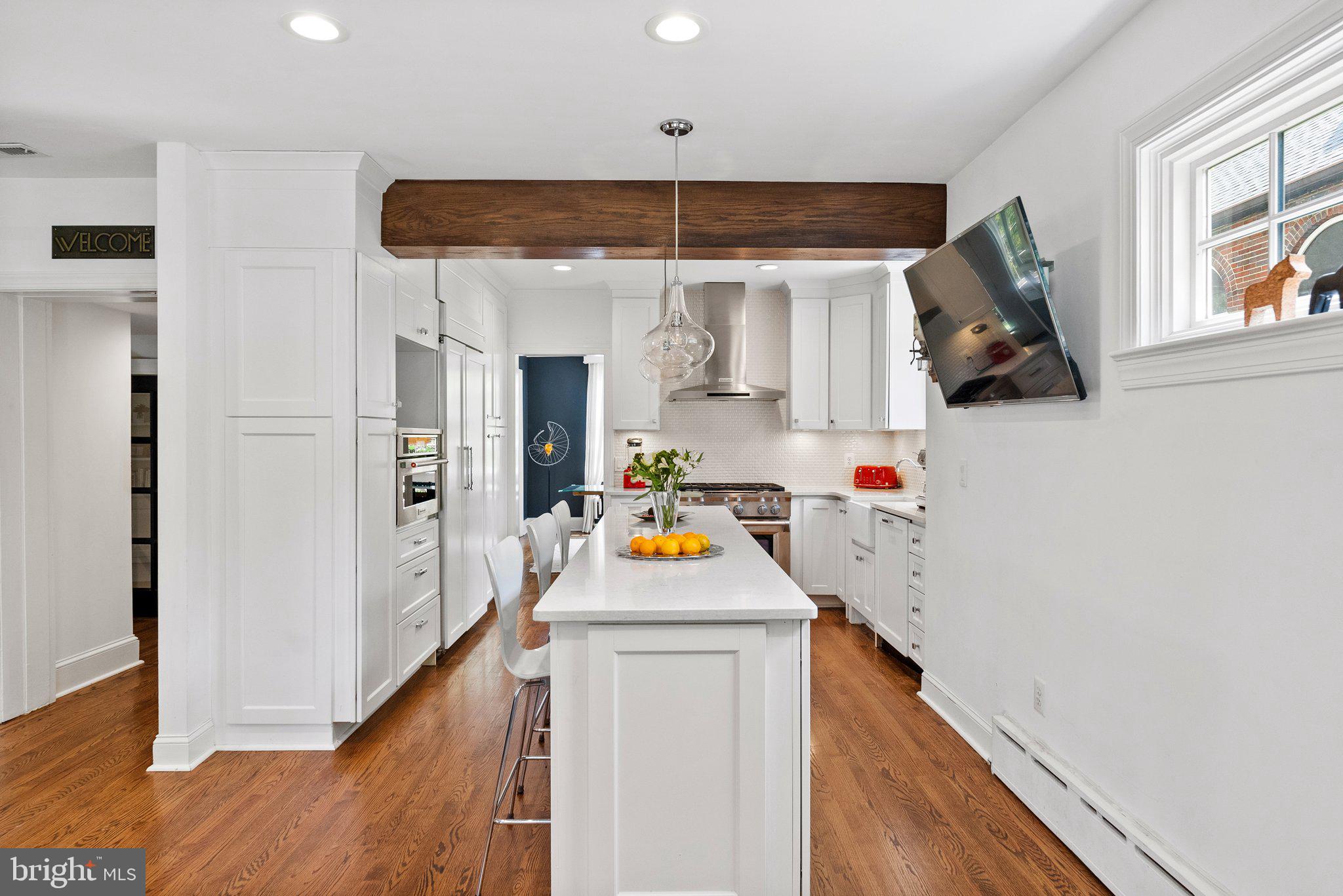 Elevated and elegant, this notable home in the Town of Chevy Chase is thoughtfully designed and beautifully renovated throughout. Brimming with curb appeal with a refined facade and landscaped gardens, this classic five-bedroom / three-and-one-half-bathroom brick Colonial offers the best of both urban and suburban living. Featuring tasteful details, such as hardwood floors, crown and decorative moldings, wood beams, wide doorways, and gorgeous windows, it allows for an abundance of natural light from all sides. Guests enter the gracious center-hall foyer, flanked by a formal living room and formal dining room. The living room is anchored by a fireplace with mantel and floor-to-ceiling bookshelves, while the bright adjacent sunroom is functional as an additional living space or home office. The heart of the home is the chef's kitchen, highlighted by a center island breakfast bar and high-end appliances. The wood beams and statement light fixtures punctuate the space, with open flow to the family room and door to the back patio and deep backyard, which includes a fire pit -- all perfect for gatherings and entertaining. An updated powder room completes the main level. The second level boasts the gorgeous primary suite featuring a spacious balcony and a spa-like en suite full bath with dual sinks, and contemporary fixtures and finishes that add a dash of style to your morning routine. Two additional bedrooms, plus a bright, full bath with a convenient washer/dryer complete this level. The third level is composed of two additional bedrooms, another full bath, and attic storage. The expansive lower level provides ample room for any need -- use as an additional recreation space, an oversized game room, or future guest suite. There is also garage access, laundry, and ample storage. 4111 Rosemary Street benefits from parks, trails, and neighborhood amenities, offering an ideal balance of a quiet residential street and close urban proximity. This home offers it all, in a picture-perfect package.