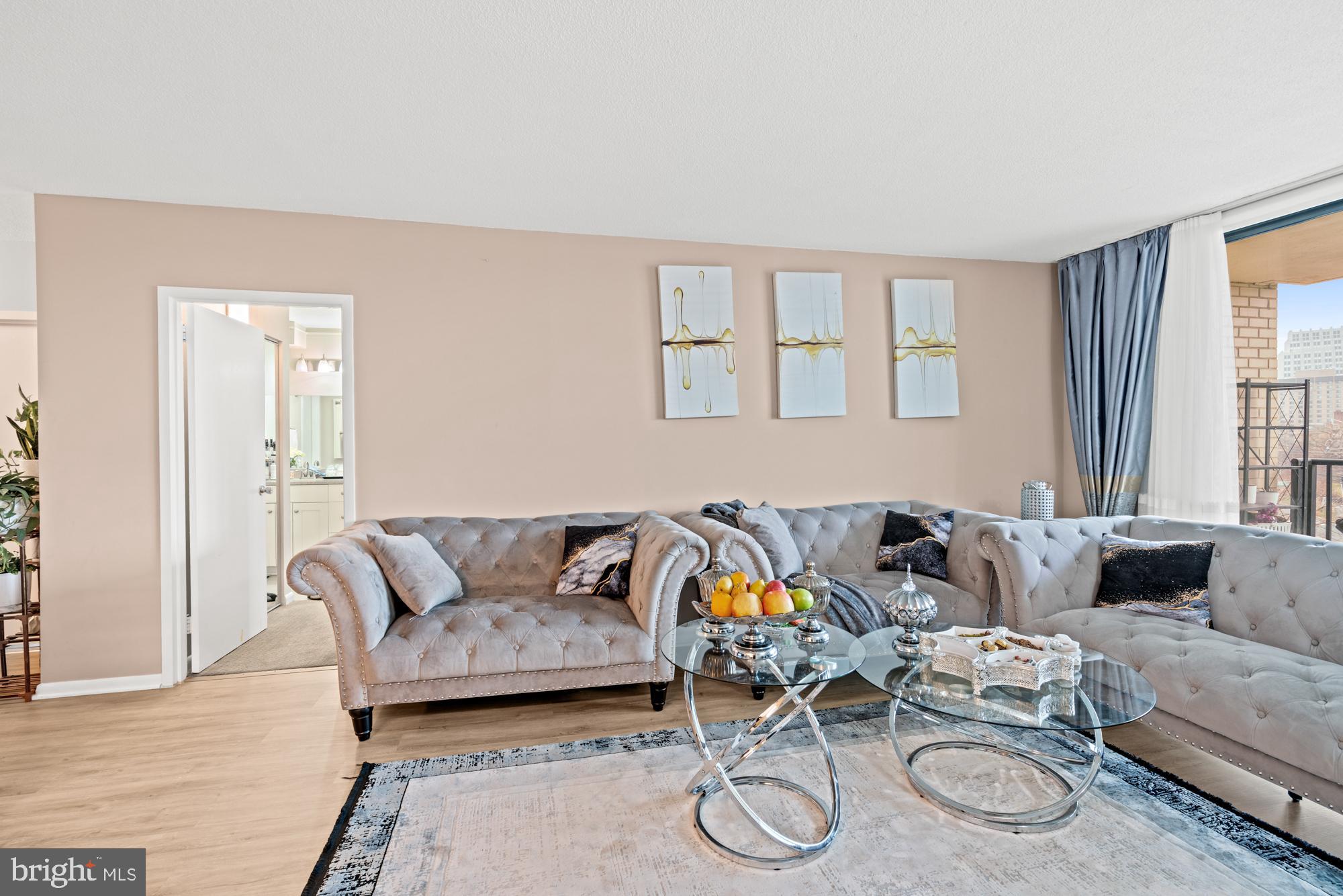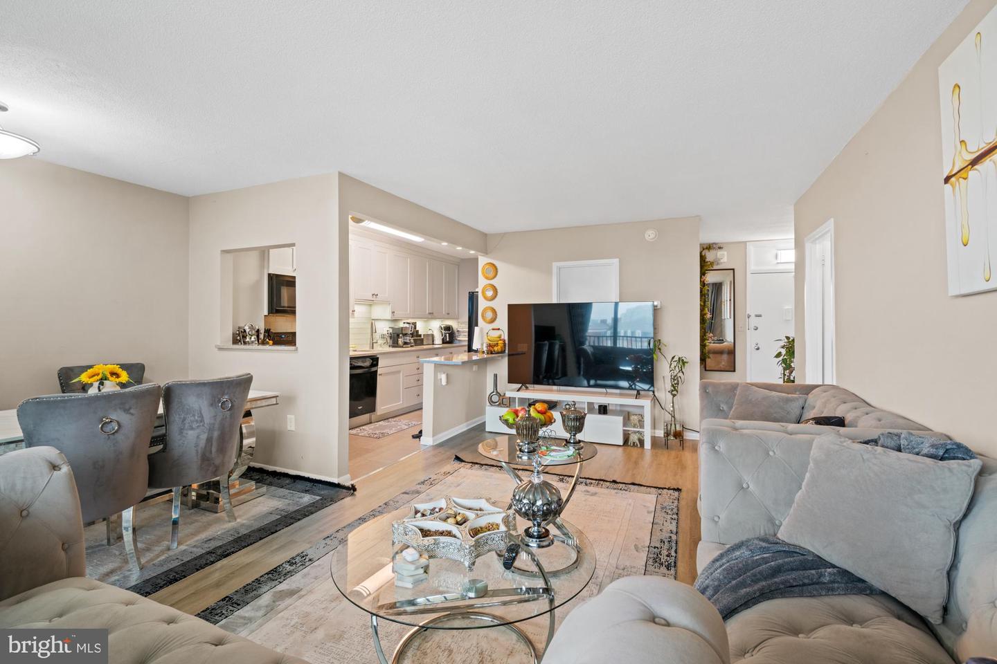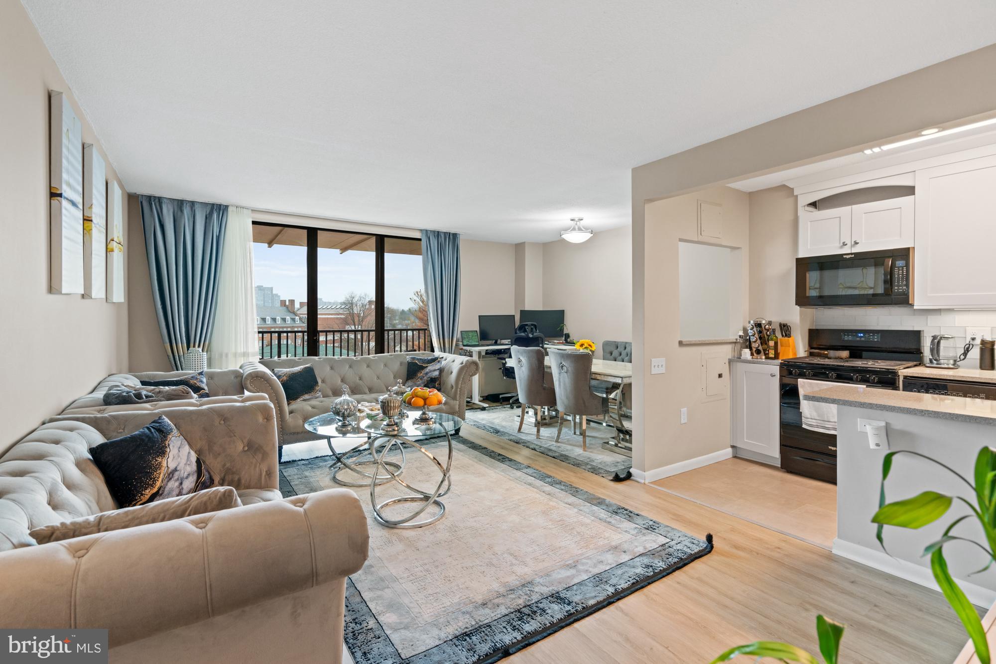 Welcome to this spacious and thoughtfully upgraded one bedroom one bathroom unit with a garage parking spot in the luxury Riviera of Chevy Chase Condominium building conveniently located in the Pearl District of downtown Bethesda. Featuring an open-concept living / dining room with sliding glass doors to a lovely balcony overlooking mature trees and picturesque neighborhoods. The kitchen adjoins the living / dining room for easy living and entertaining. Storage abounds with a sizeable walk-in closet central to the living area. Step into the bedroom, complete with ample closet space, separate vanity, and dressing area. The Riviera Of Chevy Chase Condominium building offers many amenities, including 24- hour front desk concierge, garage parking, a rooftop pool and deck with mature tree-top views, a fitness center, a community meeting room, and laundry facilities on each floor. All utilities are included, except internet / cable. With an estimated square square footage of 859 (approximate), 4242 East West Highway, Unit 613 is perfectly situated at the convergence of Bethesda and Chevy Chase, close Bethesda Row, the Capital Crescent Trail, and the shops and restaurants of downtown Bethesda. Less than a half mile to the Bethesda Metro Red Line, and easily accessible to major commuting routes and downtown D.C.