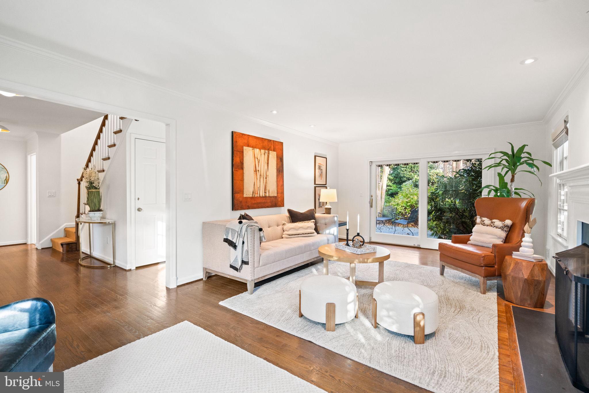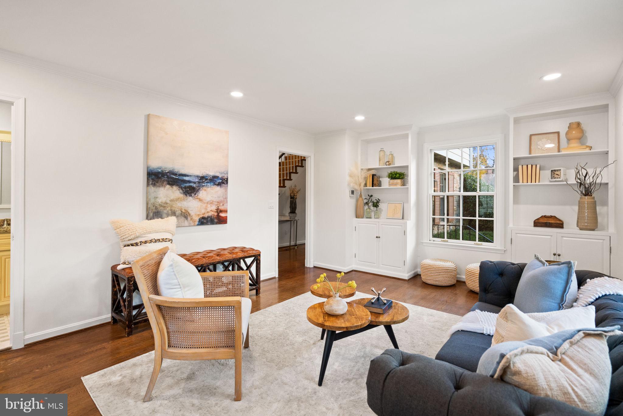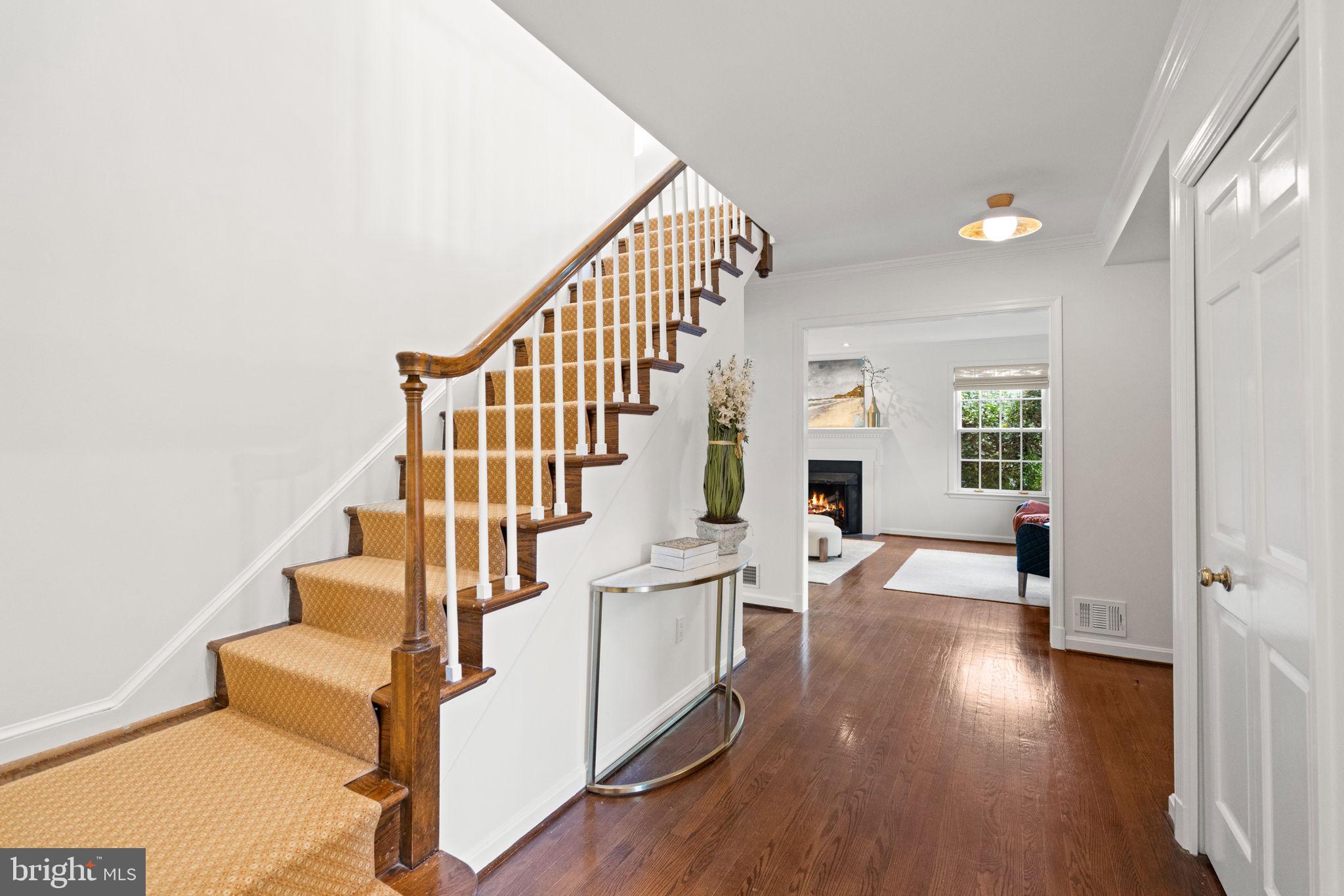 Beautifully sited on a quiet street in the desirable Overlook section of Westmoreland Hills (Bethesda), this four bedroom / three-and-one-half bath home impresses with a stately facade and proven floor plan. Multiple sliding doors lead effortlessly to the rear fenced yard with wide retractable awning, sculpted boxwoods, and flagstone paths. The well-proportioned patio feels like a natural extension of the home. This quintessential home shines with hardwood floors, decorative moldings, and custom built-ins.