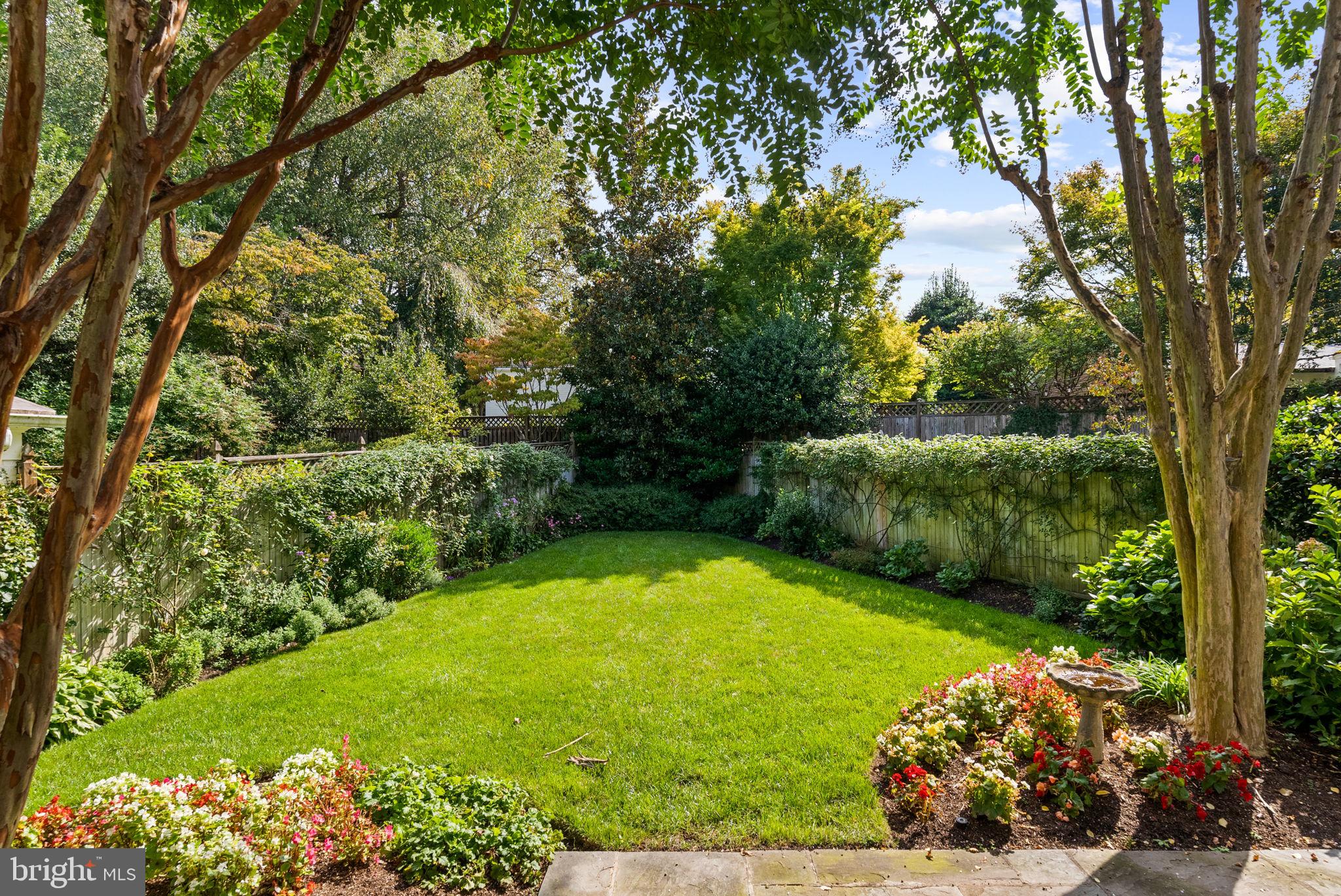 The fenced backyard is just the right size to enjoy privacy, gardening (with irrigation system in place, ready to auto-water all of your annuals and perennials.) Mature trees and flowering bushes embraced the whole lot making this a true retreat.