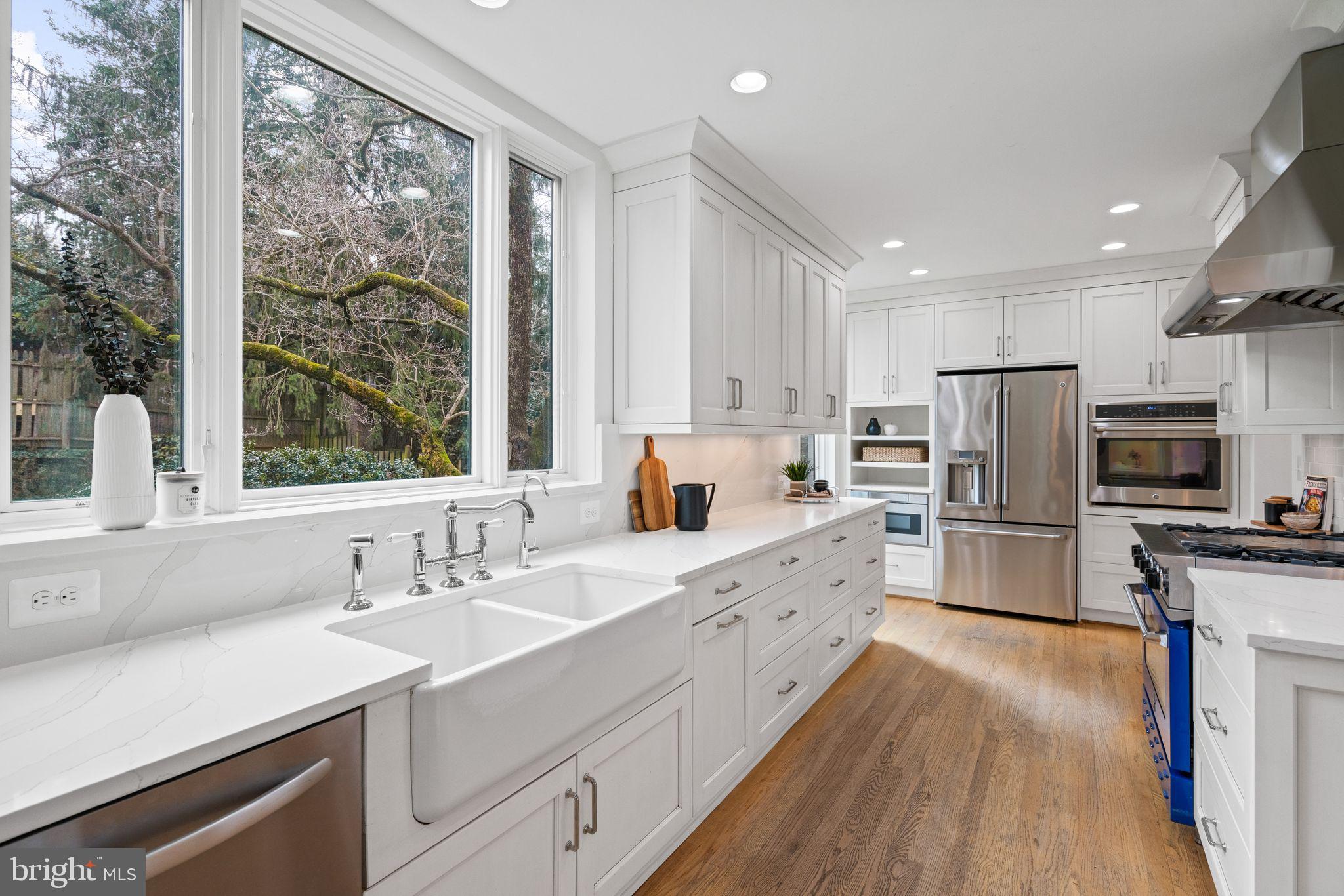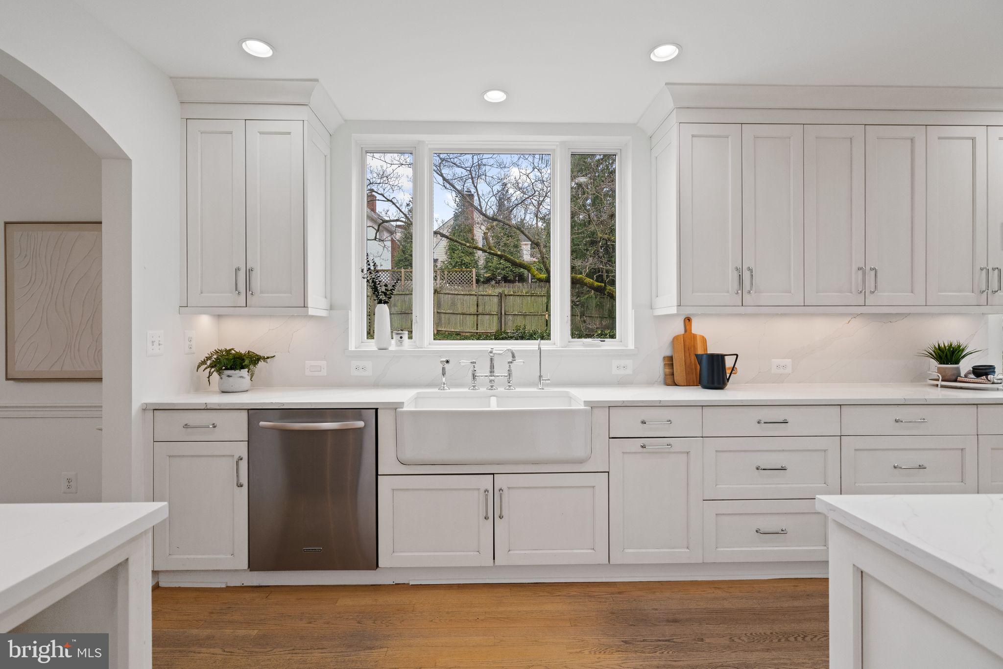Enchanting, light-filled, beautifully sited. Welcome to this expanded five bedroom home in "The Westbrook Neighborhood." Thoughtfully updated and renovated by Anthony Wilder, 5007 Baltimore Avenue blends classic charm with a calm, Scandinavian-inspired sensibility that emphasizes light, openness, and livable elegance. The home enjoys tremendous curb appeal, hinting at the warmth and character within -- arched doorways, interesting woodwork, gleaming hardwood floors, and large windows that draw sunlight into the home from both the front and the back. The fantastic floor plan allows for multiple entertaining options, including two back patios overlooking a manicured, fenced-in backyard. Guests are welcomed by an expansive paved driveway and a curved stairway surrounded by a lush front yard, mature shrubbery, and stone paths. Inside, a traditional center-hall foyer leads to the formal living room, anchored by a fireplace, as well as a versatile first-floor bedroom option with murphy bed. The elegant dining room boasts chair rail molding and French doors opening to the back patio and connects seamlessly to the stunning, light-filled kitchen. Here, design and function come together with stainless steel appliances including a gas range, built-in microwave, and wine refrigerator, along with a gorgeous farmhouse sink, pantry, and built-ins. A mudroom off the kitchen, accessed from a side door, allows for excellent daily flow into the home. A cheery sunroom, also with patio access, and a powder room complete the main level. Upstairs are four generously sized bedrooms, including the owner's bedroom with dual closets and an en suite full bath. A convenient second-floor laundry room, a full hall bath with two sinks, and linen closets add everyday practicality. What is even more fun? One bedroom includes a cozy sleeping loft above the bedroom which is bound to be a hit. The lower level features an oversized recreation room with recessed lighting, a wet bar, and a bonus room, as well as a door to the backyard and access to the attached one-car garage. The yard is a standout. Fully fenced, it provides multiple entertainment options for both two- and four-legged friends. Large enough to accommodate another addition in the future, or just double-down on the flowers and garden. It's a true retreat. 5007 Baltimore Avenue benefits from neighborhood parks and trails and is convenient to Friendship Heights, Spring Valley, Westbard Square, downtown Bethesda, the Capital Crescent Trail, and major transportation routes. Named one of Bethesda Magazine's "Great Neighborhoods," the Westbrook neighborhood is a well-established community that continues to delight residents decade after decade with its Fourth of July and Halloween parades, block parties, and other neighborhood traditions. 5007 Baltimore Avenue is a short stroll to neighborhood favorites including Millie's, the hometown butcher Wagshal's, and sidewalk dining at Pizzeria Paradiso, along with Compass Coffee, Crate & Barrel, and the Spring Valley Shopping Center. Just about a mile away are the Friendship Heights Metro and its many conveniences, including dining, shopping, Amazon Grocery, medical offices, Whole Foods, and more. Westbrook Elementary, Westland Middle, and B-CC High School serve the neighborhood. The home is also inbounds for the Little Falls Swimming Club. Welcome home to one of the most delightfully maintained and thoughtfully loved homes in the neighborhood.
