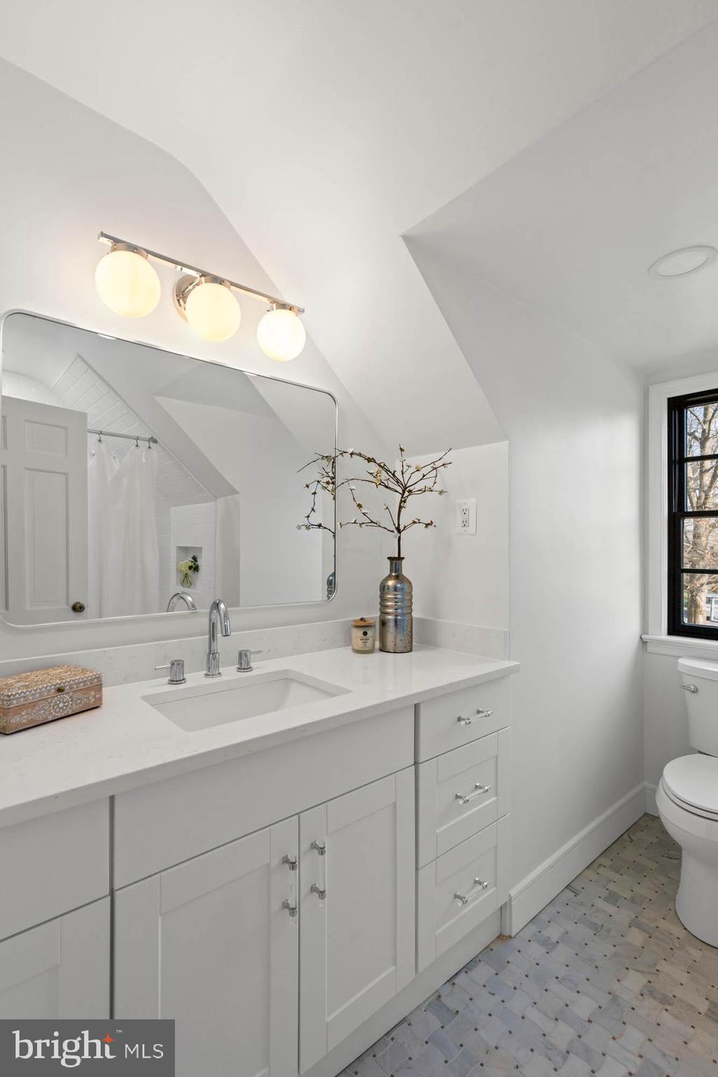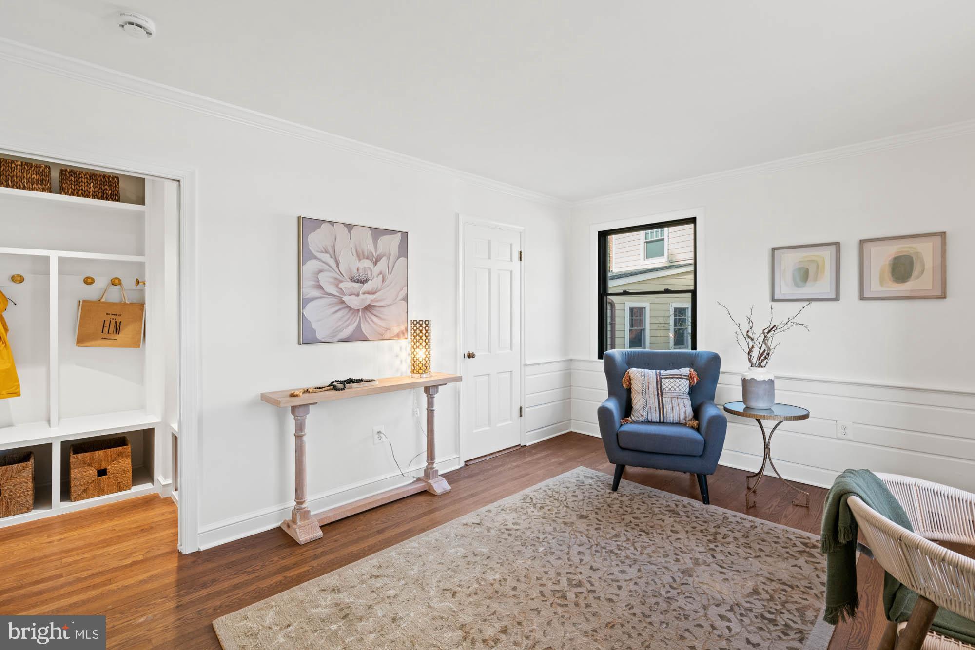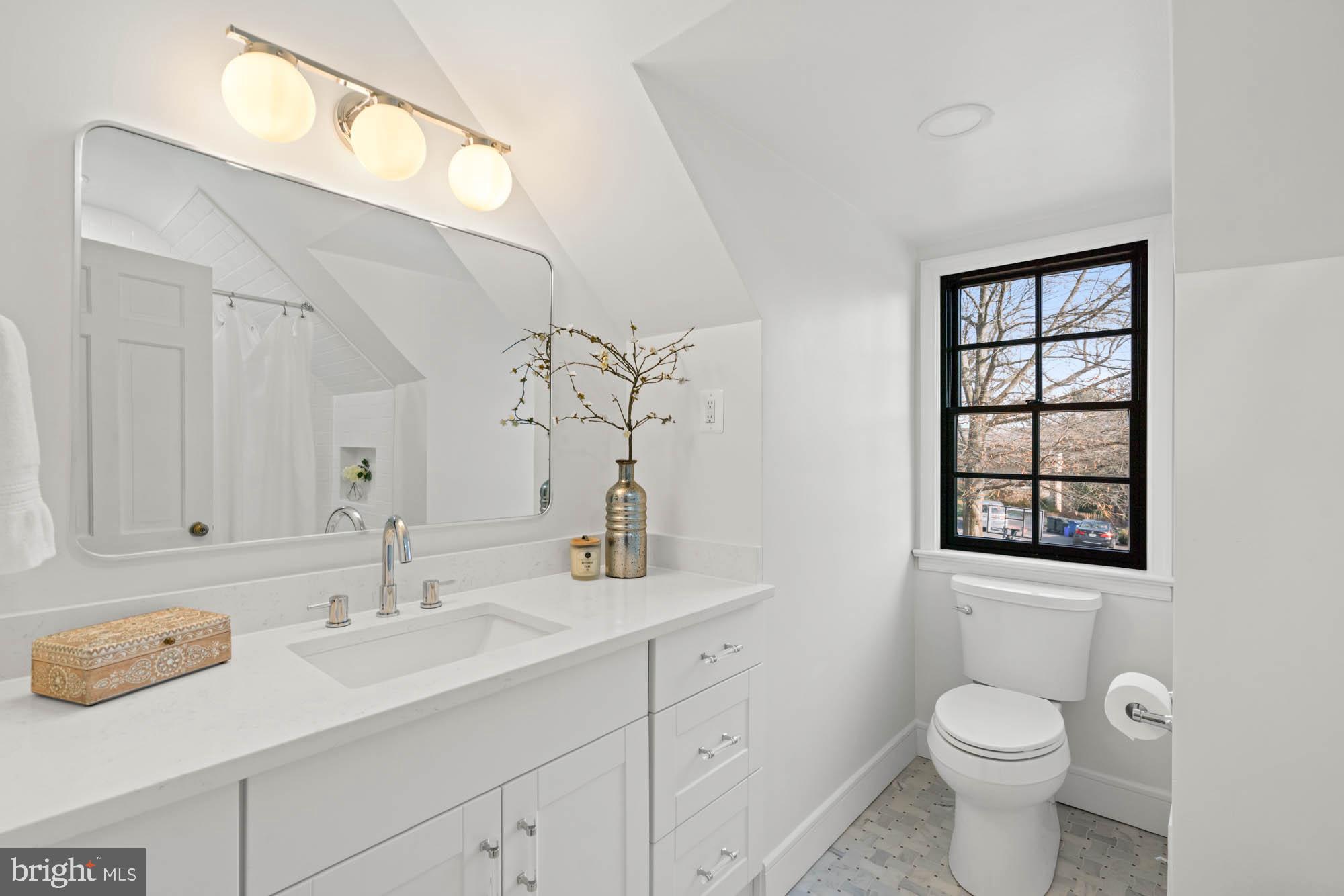 Upstairs, the primary suite offers a peaceful retreat with a built-in window bench, dual closets, an en suite bath, and easy access to the attic for extra storage. Two additional bedrooms, both generously sized, and a renovated hall bath complete the second level, ensuring everyone has their own space.