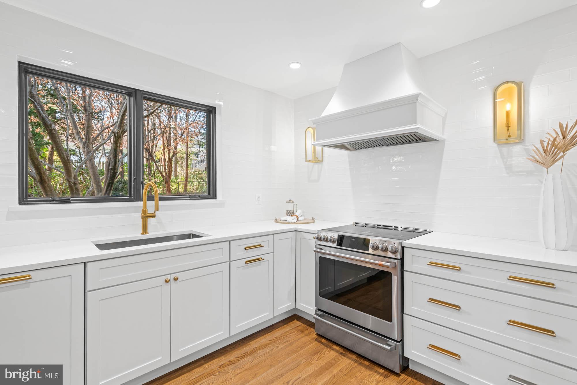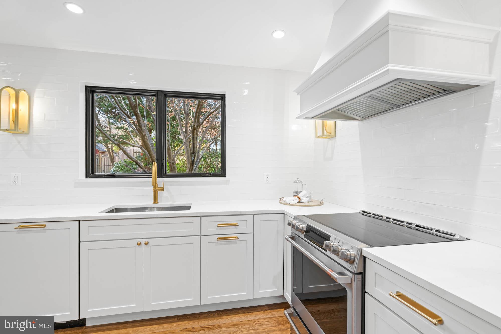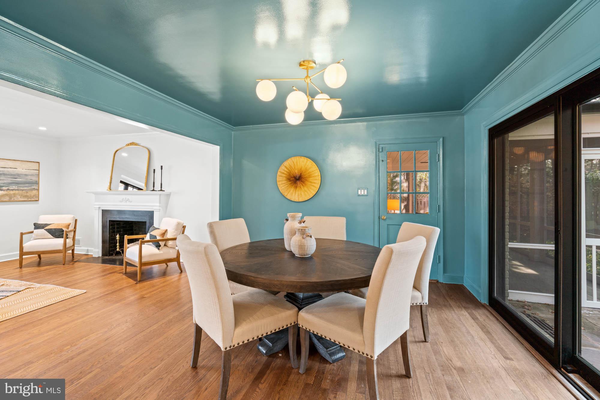 The main floor shines with gleaming hardwood floors and a magazine-worthy kitchen, featuring all-new windows that flood the space with natural light. This chef's kitchen is a showstopper, boasting high-end appliances, a five-burner range with a custom hood, a built-in microwave, and a paneled refrigerator/freezer. The formal dining room, with oversized sliding glass doors, opens to the screened porch and a flagstone patio, making indoor-outdoor entertaining a breeze.