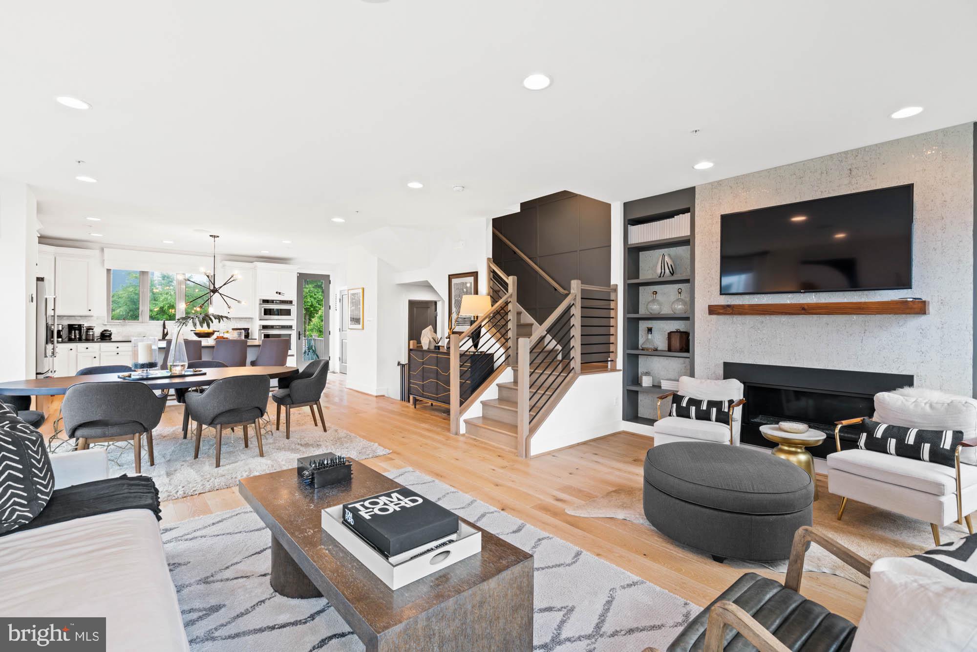 Light fills this home on three sides which gives it a special open and airy vibe. Enter into the main level with a welcoming and spacious foyer that leads to french doors into the office / first bedroom with two custom desks and a built-in queen-sized Murphy bed and en suite full bath. Head up the stairs to the second level and you're greeted with open-concept perfection! There's a delightful wallpapered powder room for guests and a stunning, modern and white kitchen -- the heart of the home with stainless steel, high-end appliances; granite countertops; on-trend lighting, an ample island with seating; and custom cabinetry. The spacious living and dining areas are adorned with designer furnishings and custom details -- built-ins, a fireplace, and oversized windows -- that create a luxurious and welcoming feel. The third level has a private primary retreat with an en suite bath with double sinks and walk-in closets, down the hallway to the third bedroom with a full bed, large hall bath, and the fourth bedroom with a charming bunk bed. The upper level is an open and airy treetop deck for entertaining and dining with lovely and leafy long-range views.