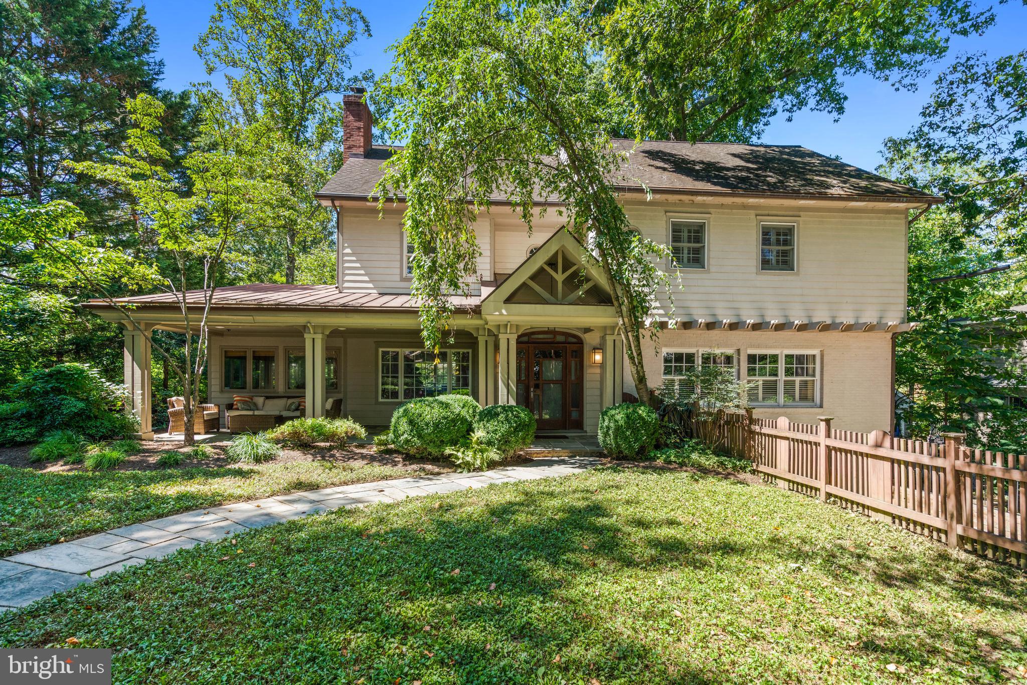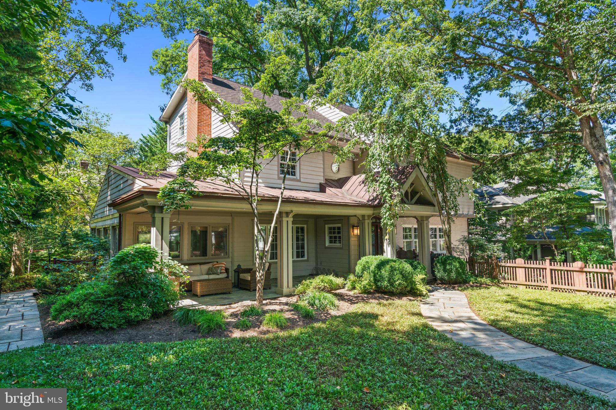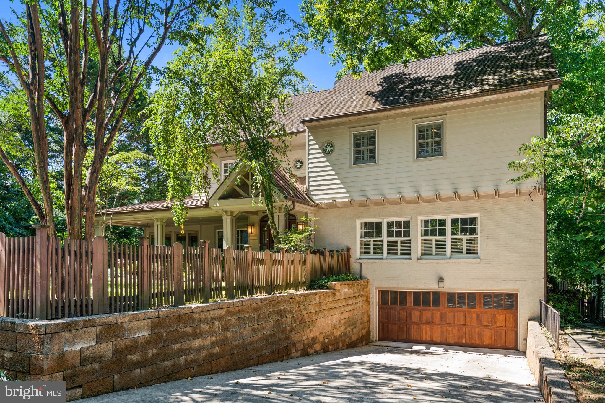 Sited on a private lot in the heart of Glen Echo Heights, 5128 Wissioming Road shines with light-filled contemporary design, dramatic fixtures, and thoughtful details throughout. Delivering 5,000+/- square feet across four finished levels, this 6-bedroom, 4 full and 2 half baths home combines generous proportions with intimate spaces. Finer details include oversized windows, crown and decorative moldings, hardwood floors, and two fireplaces. Multiple outdoor spaces extend the living, providing both serene retreats and entertaining backdrops. A charming front gate and flagstone walkway lead to a covered front porch that opens into a foyer with high ceilings and an elegant flow. Sunlit living and dining rooms anchor the main floor, complemented by a home office with wood-paneled ceiling and built-ins, a powder room, and a gourmet kitchen with center island and breakfast bar open to the spacious family room. From here, step onto the back deck or down to the expansive patio surrounded by mature landscaping for privacy and quiet gatherings. The second floor is home to the primary suite, complete with private sitting room, custom walk-in closet, and updated en-suite bath with dual vanities. Two additional generously sized bedrooms with walk-in closets, a hall bath, and laundry complete this level. Need more space? The third level is outfitted with three bedrooms, another full bath with dual sinks and two toilets, along with abundant storage space. The walkout lower level includes garage access via a private entrance, a recreation room, a large storage area, and another full bath. An attached two-car garage and private driveway add convenience, while the setting places you just a short stroll from the Potomac River and Glen Echo Park. Glen Echo Heights itself is known for its tree-top canopies, trails, and close-knit feel, plus a neighborhood park with playground, basketball court, and multi-use field. With easy access to downtown Bethesda, Friendship Heights, NW D.C., and major commuting routes, this home delivers the best of both: a secluded retreat in a supreme location. All square footage estimates are believed to be reliable but are not guaranteed.