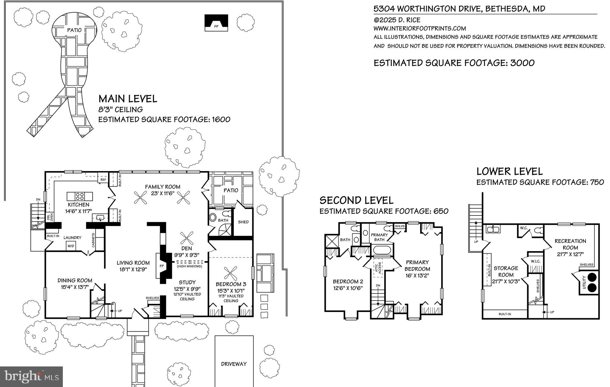 Upstairs, there are two bedrooms, each with dual closets and en suite full baths. There is an attic above for additional storage. The lower level recreation room can be finished for another gathering space; the storage room with built-ins and a walk-in closet, and a quarter bath offers future value.