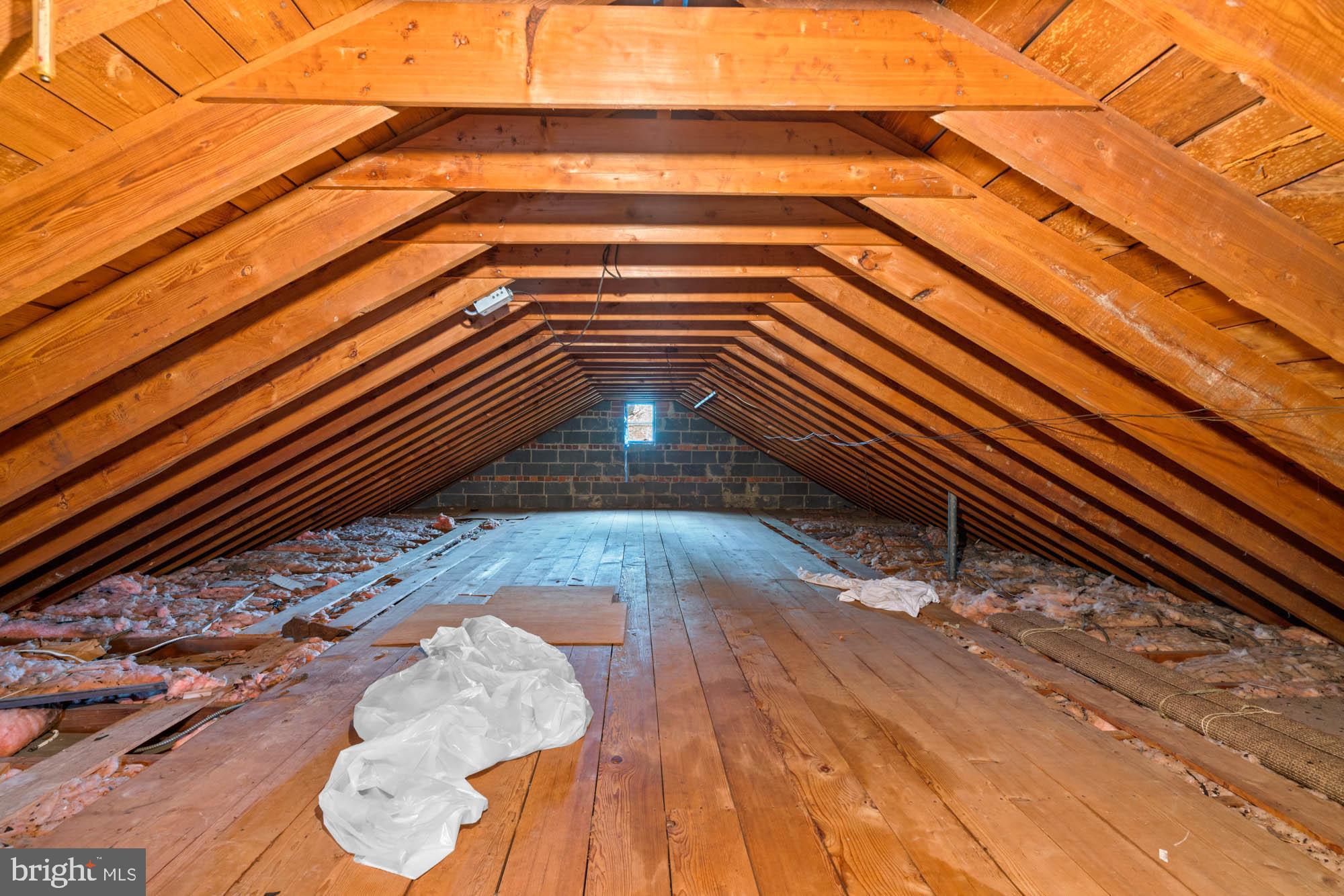 Downstairs, the recreation room with wood-paneled walls also enjoys exterior access, and there is an additional fourth bedroom, another full bath, laundry, and storage. Other offerings include a huge unfinished attic for even more storage and an attached one-car garage for private, off-street parking.