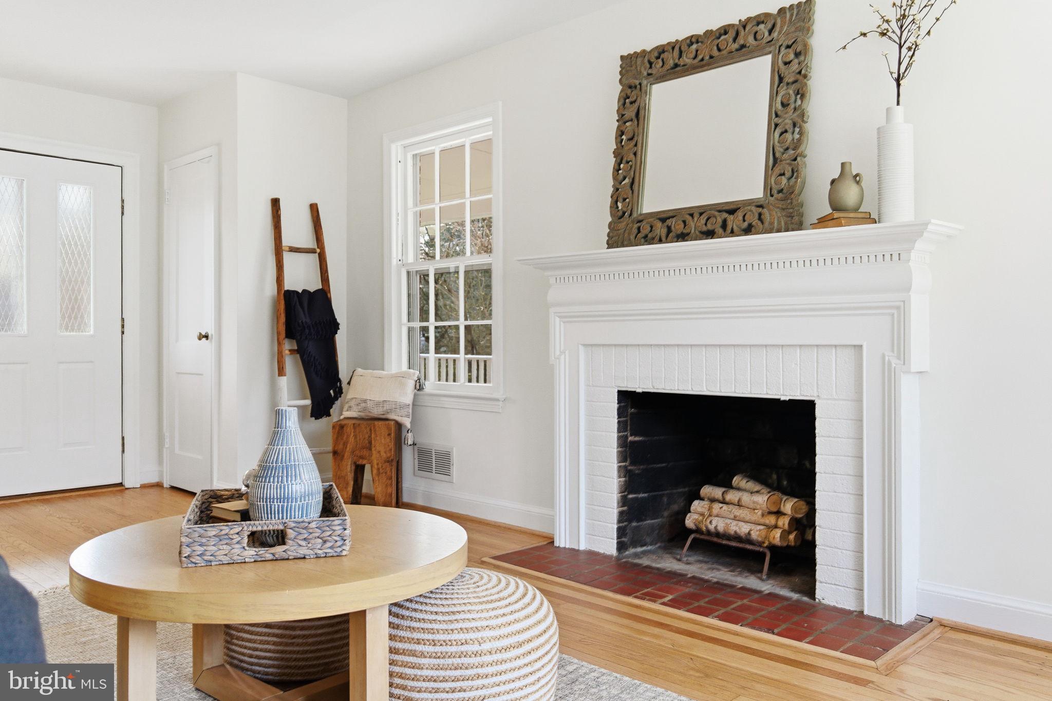 A cheerful brick facade, landscaped grounds, and a wrap-around covered front porch create immediate curb appeal and hint to the warmth within. Inside, gleaming hardwood floors and sun-filled spaces define the main level. The gracious living room is anchored by a fireplace and framed by a gorgeous bay window, offering warmth and tradition from the moment you enter. A convenient main-level powder room adds everyday functionality.