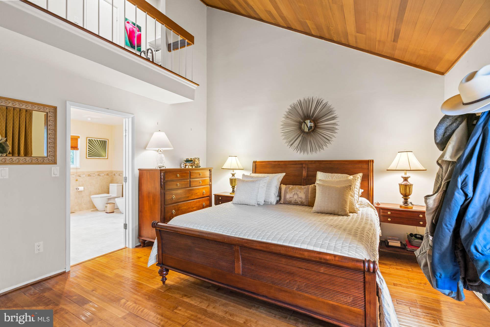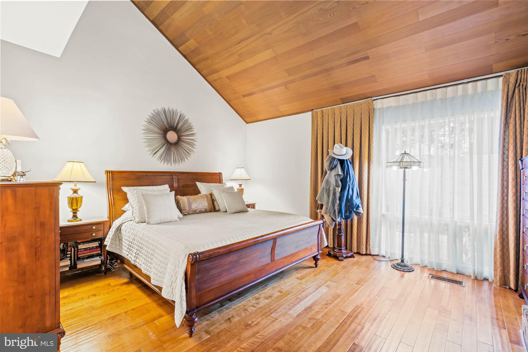 The main level is highlighted by the spacious primary suite with a sizable en suite full bathroom and access to a private patio on the side yard. The two-sided wood-burning fireplace warms both the bedroom suite and the family room. The main level impresses with a spectacular floor plan boasting multiple doors to patios overlooking the verdant property, which creates a wonderful flow for entertaining.