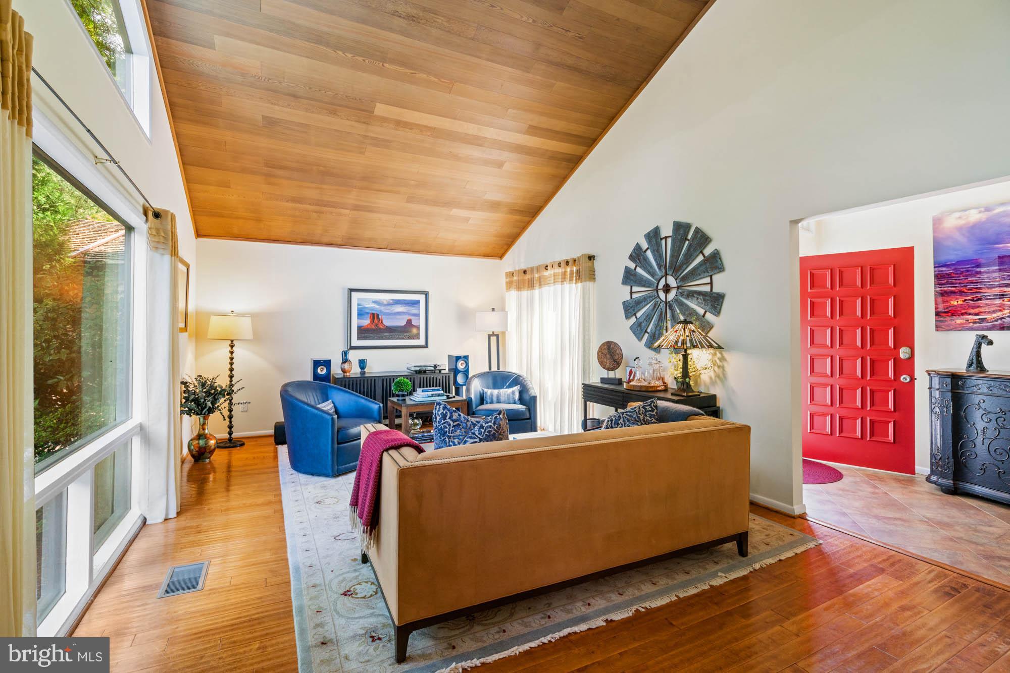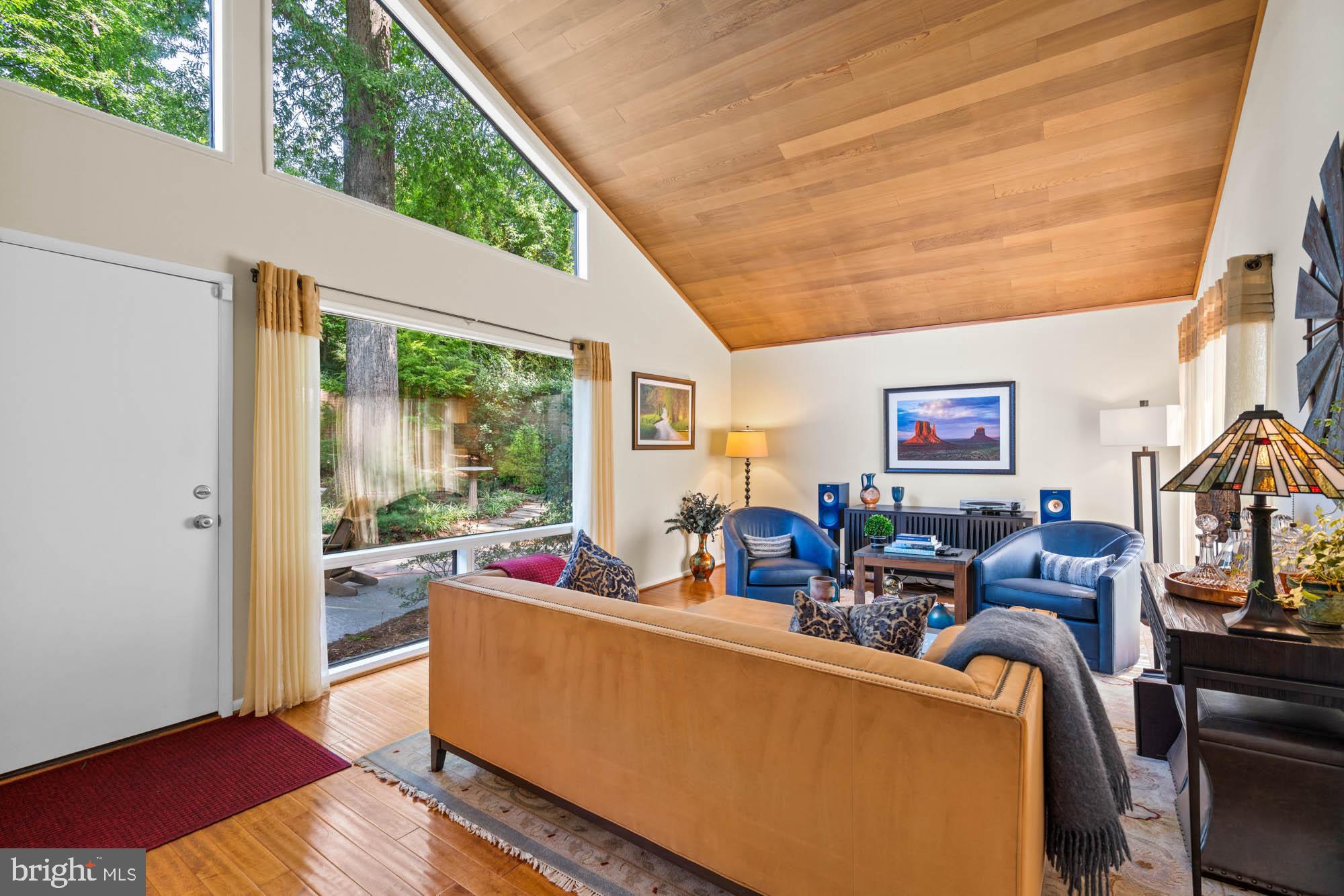 Nestled on lush, private grounds in the beloved Drumaldry community of Bethesda, this contemporary home with mid-century modern aesthetic offers serenity and seclusion yet it is within minutes to downtown Bethesda, NIH, Suburban Hospital, schools, shopping, restaurants and commuter routes.