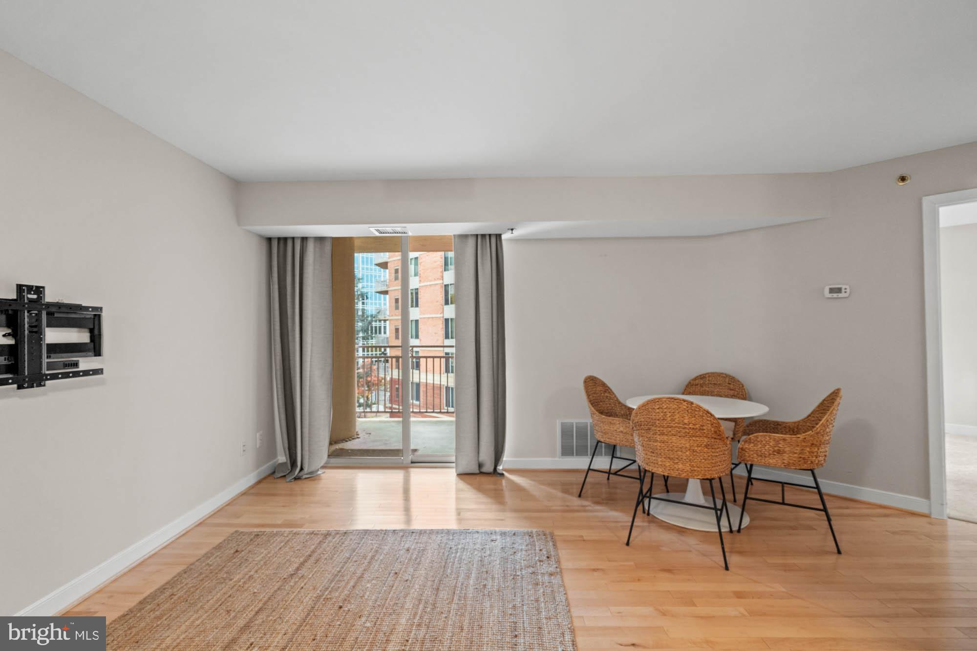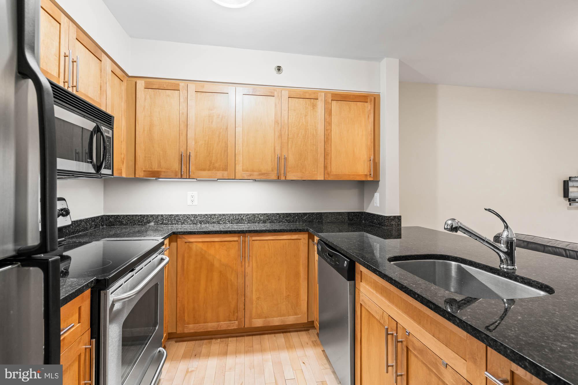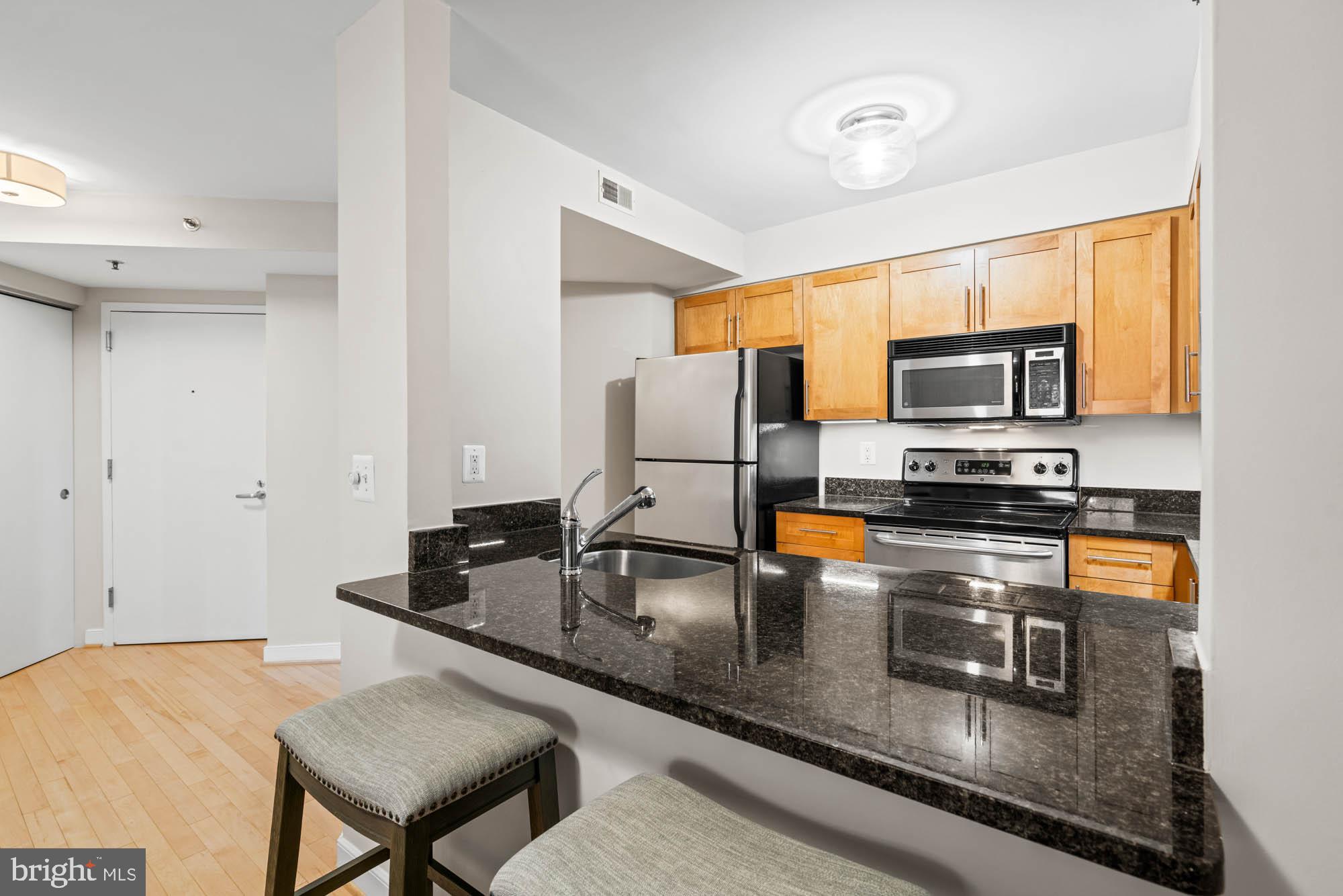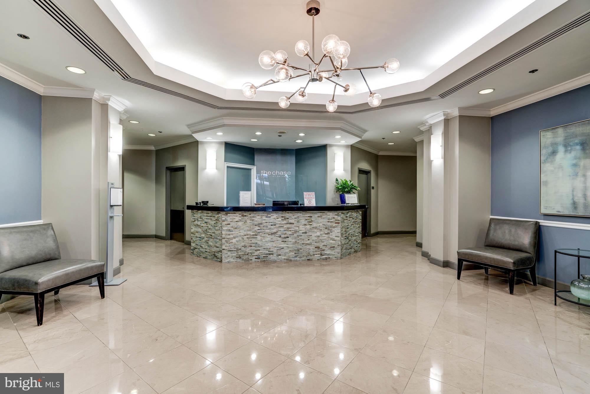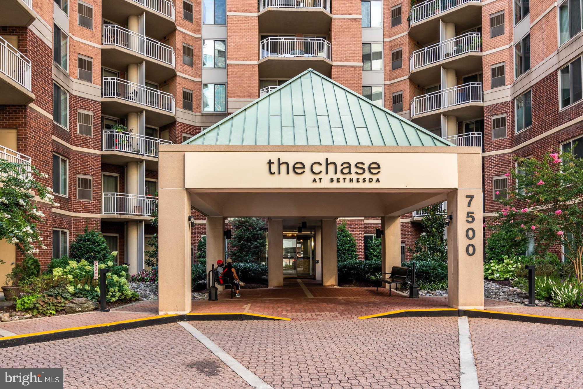 Located in the heart of downtown Bethesda, luxury meets convenience in this well-maintained one bedroom / one full bath unit in the full-service Chase at Bethesda Condominium building with a private garage parking space and storage unit included! Featuring an open-concept floor plan with a combination living / dining room, which enjoys sliding glass doors to a private balcony with city views. The kitchen offers beautiful granite countertops, a lovely breakfast bar, and stainless steel appliances, including a range and a built-in microwave. The sun-filled bedroom has a spa-like en suite bath, and storage abounds with a sizable walk-in closet, as well as an additional designated storage space. In-unit washer / dryer! 7500 Woodmont Avenue S513 benefits from a pet friendly and well-managed luxury building with many amenities, including 24-hour concierge, an outdoor pool, a hot tub, and tennis courts, as well as a business center and multiple common outdoor spaces. Extreme convenience to all of the shopping, restaurants, and recreation that downtown Bethesda has to offer. The Metro, major commuting routes, and neighborhood parks and walking paths are nearby.