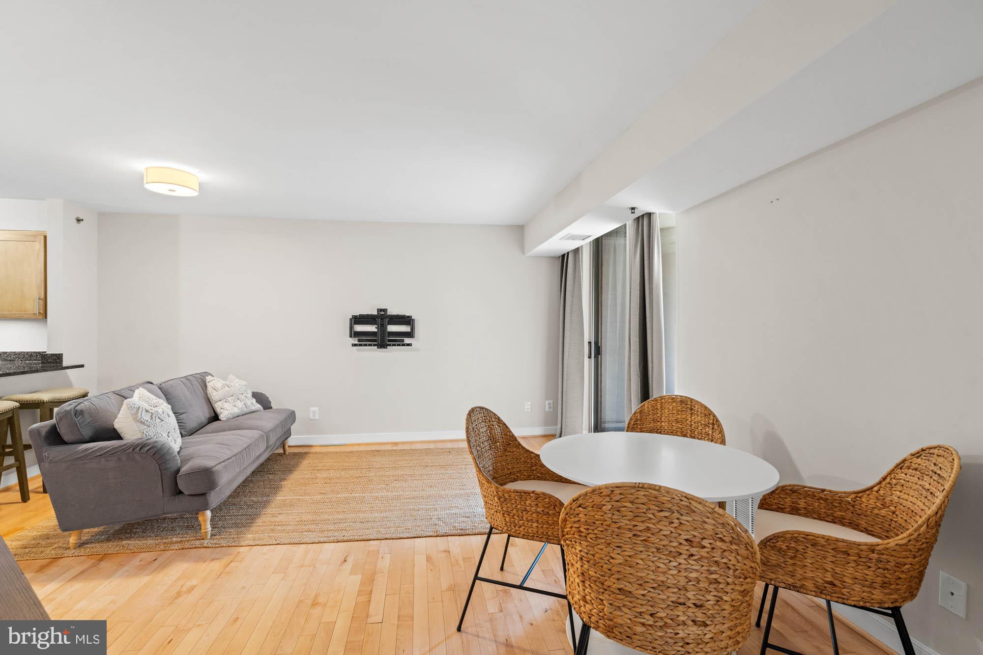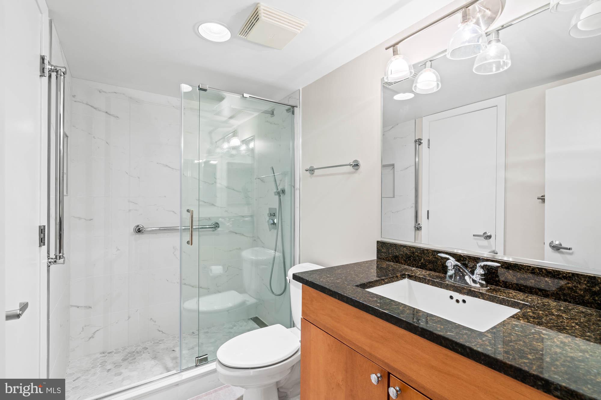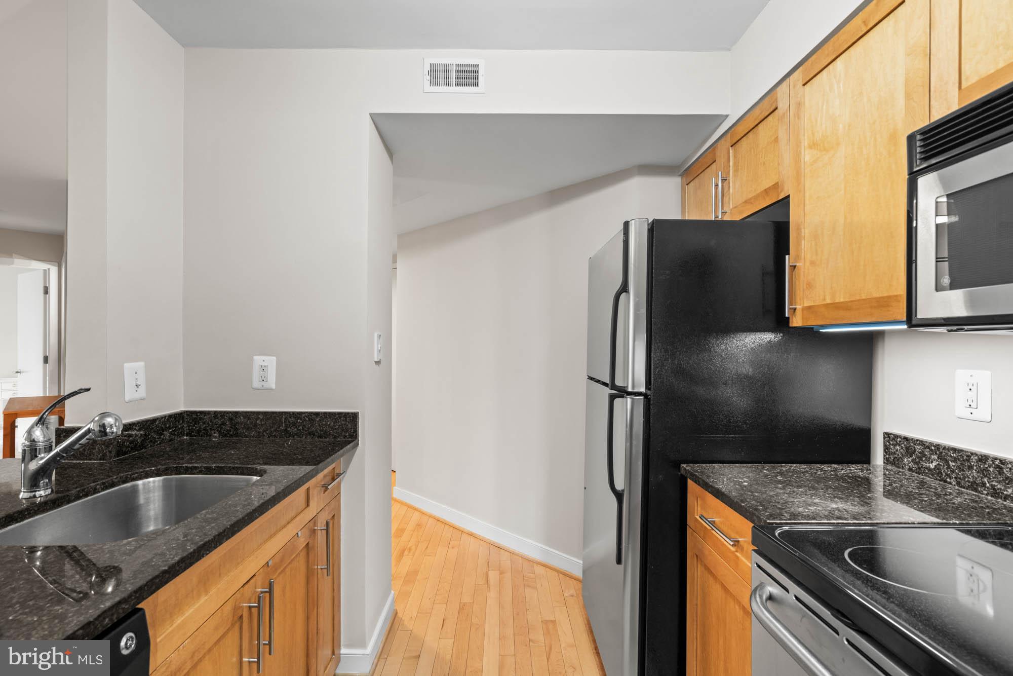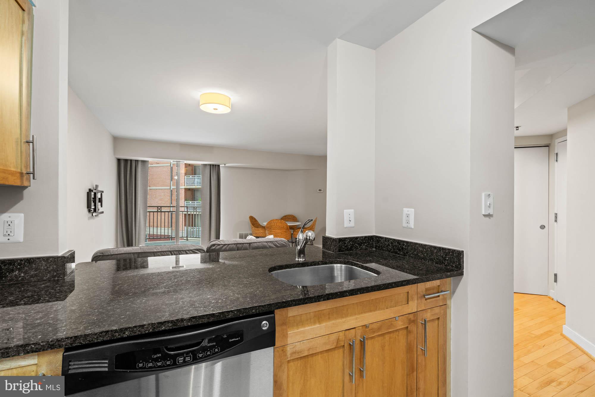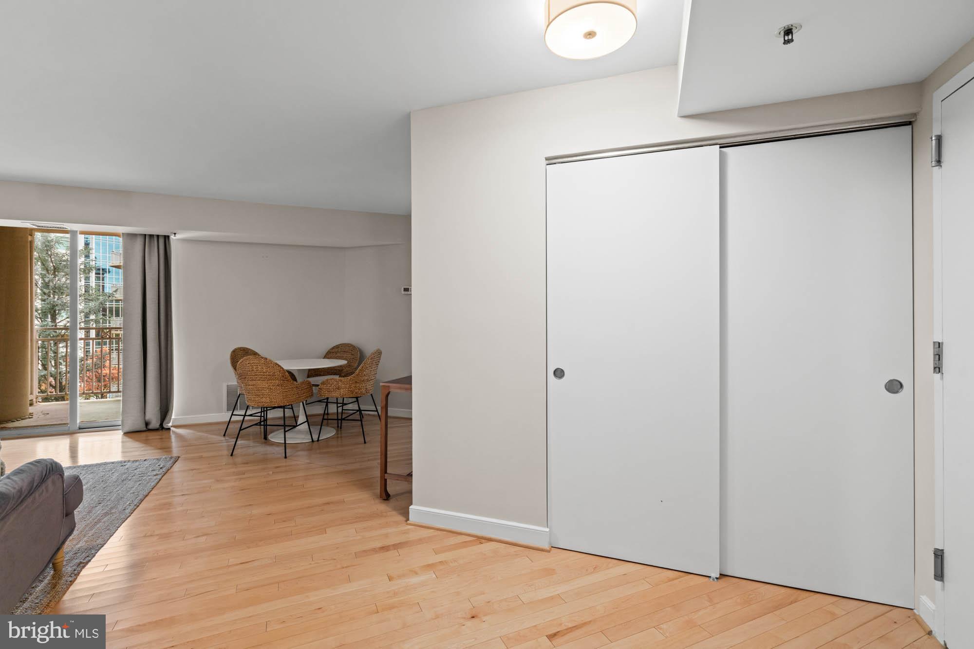 Located in the heart of downtown Bethesda, luxury meets convenience in this well-maintained one bedroom / one full bath unit in the full-service Chase at Bethesda Condominium building with a private garage parking space and storage unit included! Featuring an open-concept floor plan with a combination living / dining room, which enjoys sliding glass doors to a private balcony with city views. The kitchen offers beautiful granite countertops, a lovely breakfast bar, and stainless steel appliances, including a range and a built-in microwave. The sun-filled bedroom has a spa-like en suite bath, and storage abounds with a sizable walk-in closet, as well as an additional designated storage space. In-unit washer / dryer! 7500 Woodmont Avenue S513 benefits from a pet friendly and well-managed luxury building with many amenities, including 24-hour concierge, an outdoor pool, a hot tub, and tennis courts, as well as a business center and multiple common outdoor spaces. Extreme convenience to all of the shopping, restaurants, and recreation that downtown Bethesda has to offer. The Metro, major commuting routes, and neighborhood parks and walking paths are nearby.